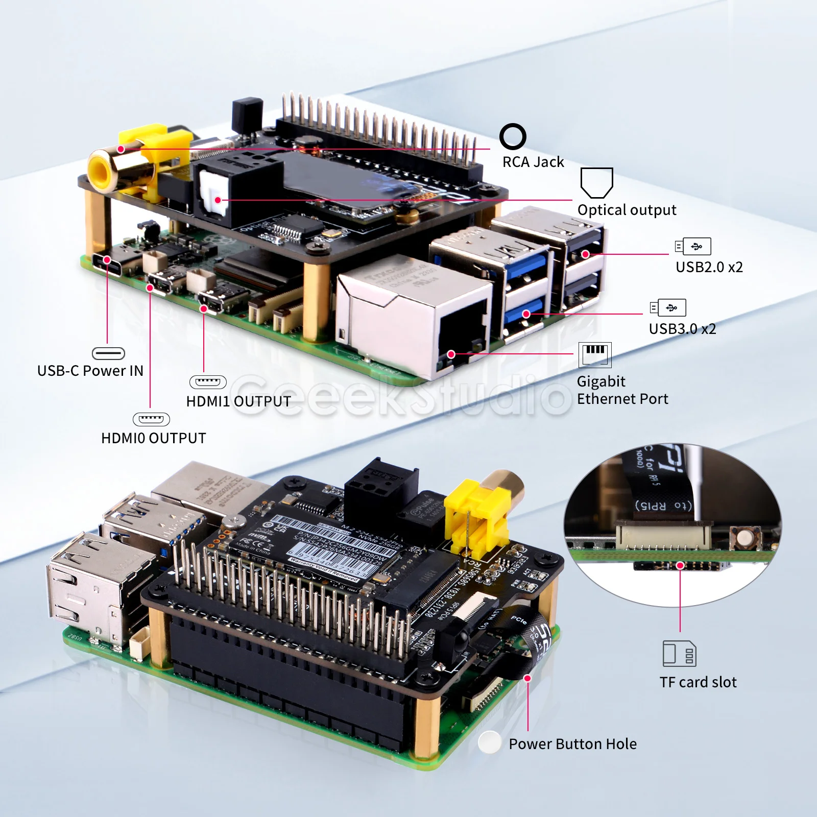 Integración HiFi Digi:Salida S/PDIF de alta calidad: NVdigi incorpora HiFi Digi, proporcionando una salida S/PDIF (interfaz digital Sony/Philips) de alta calidad para Raspberry Pi 5.