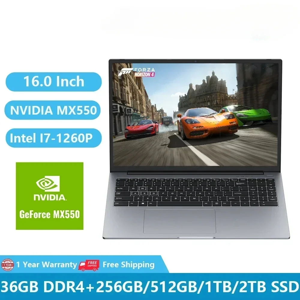 Comprar NVIDIA-ordenador portátil para juegos Geforce MX550 GDDR6, tarjeta gráfica de 4GB, Notebook de 2023 pulgadas, Intel I7-1260P, 36GB de RAM + 2TB, RJ45, WiFi, tipo-c, 16,0