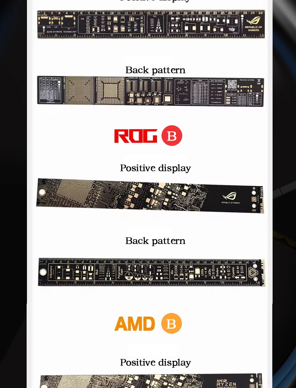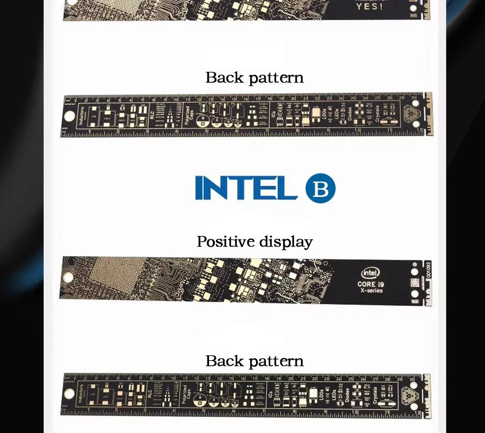 El producto utiliza la misma PCB que la placa base del ordenador. Para los entusiastas, El PCB es el soporte para los componentes electrónicos y el portador para las conexiones eléctricas de los componentes electrónicos. Esta regla tiene una verdadera sensación para los componentes eléctricos y es una regla de fe confiable. Es una gran opción para coleccionar y dar regalos.