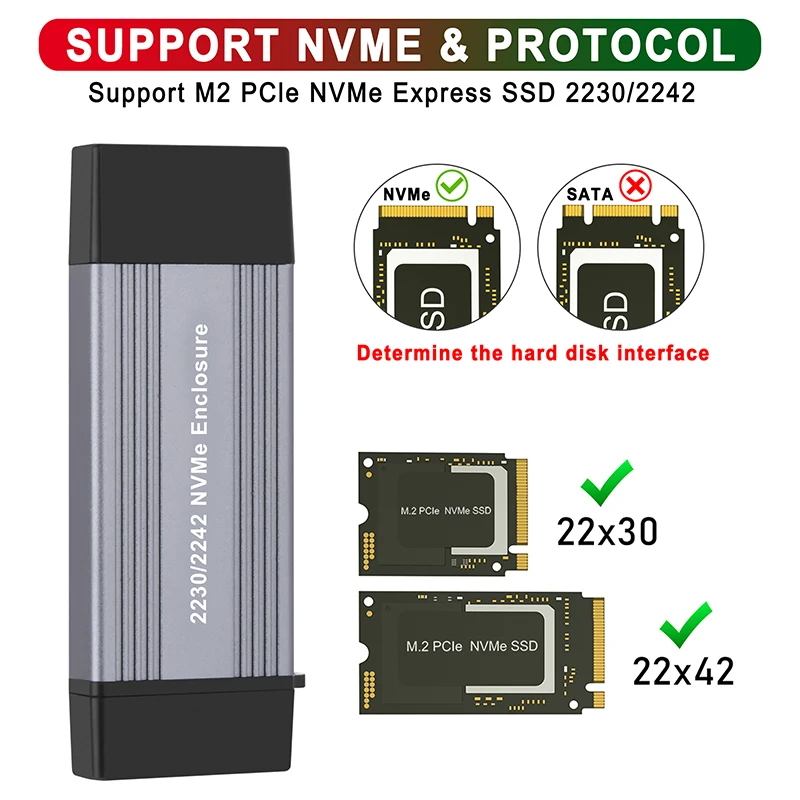 Compatible con NVME PCIe M Key/M + B Key SSD, ¡NO es compatible con m.2 SSD SATA!