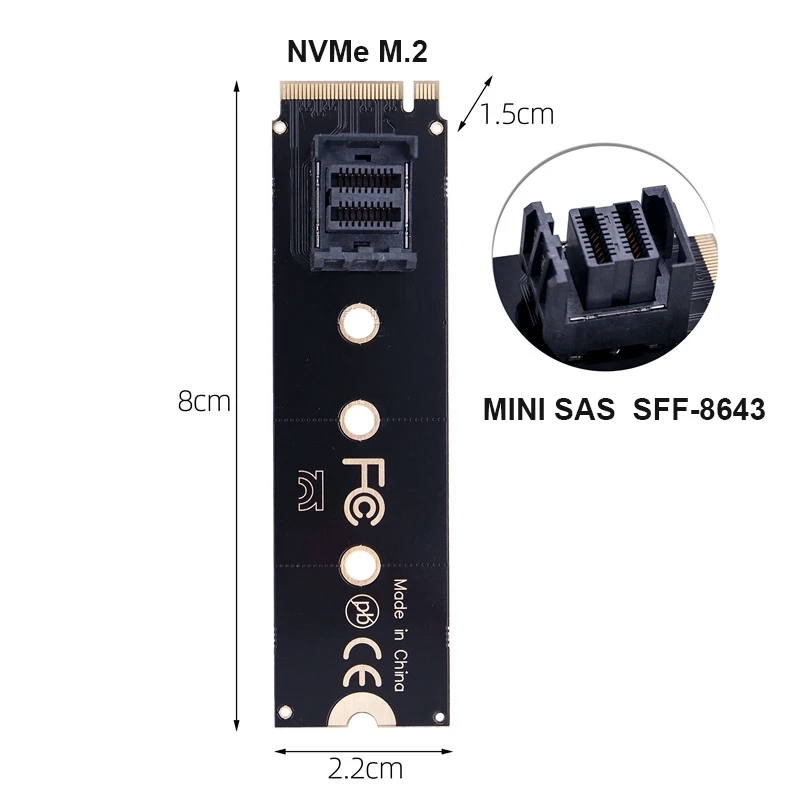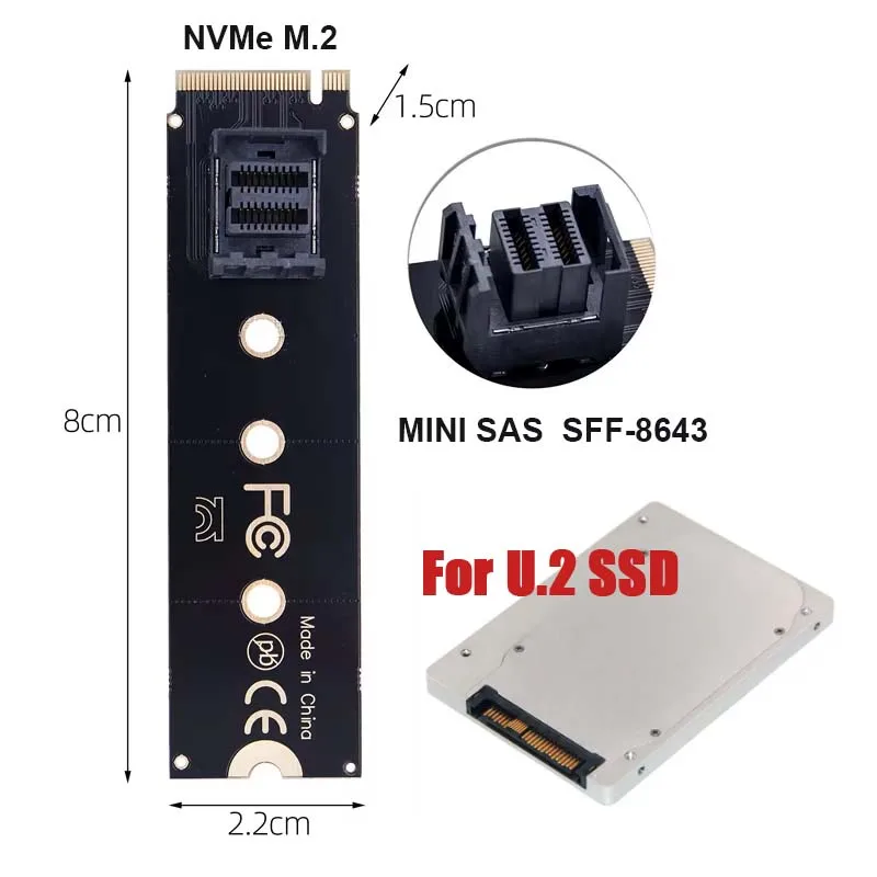 NVME M.2 KEY M a Mini SAS SFF-8643 Convertidor U.2 SSD Adaptador de extensión Tarjeta de expansión de unidad de estado sólido para computadora portátil placa base