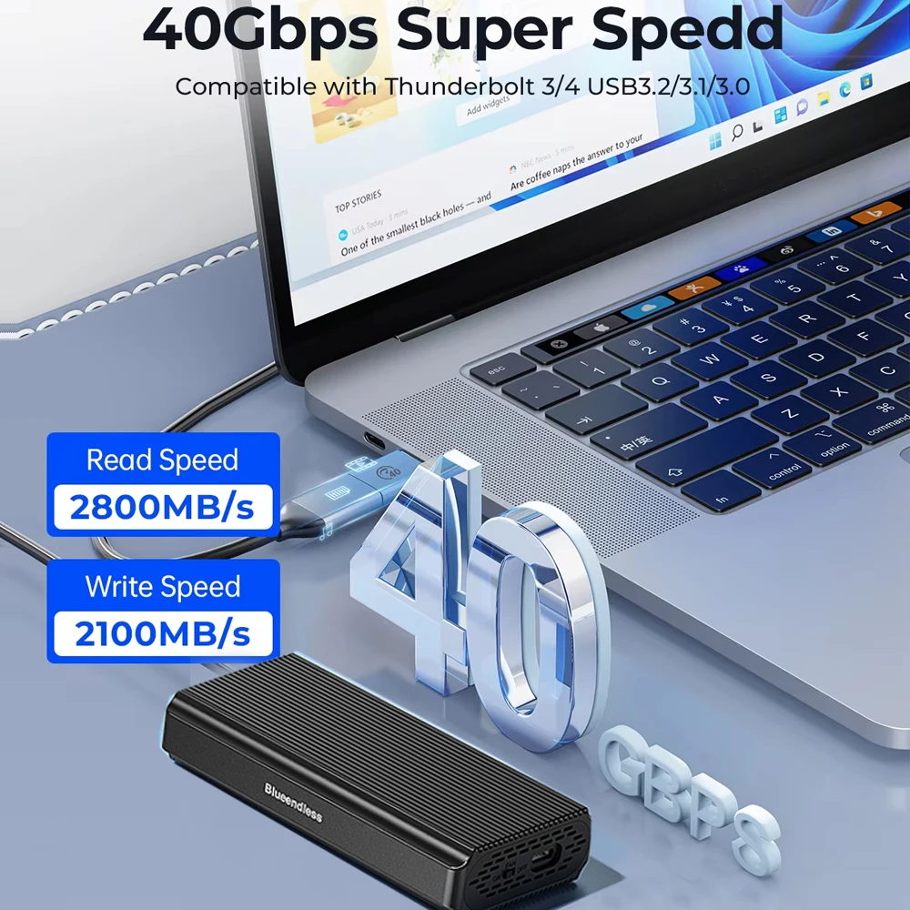 Alta velocidad de 40 Gbps: interfaz USB4, la velocidad de transferencia puede alcanzar 40 Gbps, transferencias de archivos completas rápidamente, aproximadamente 8 veces más rápidas que las velocidades de transferencia de interfaz estándar USB3.0 convencionales.