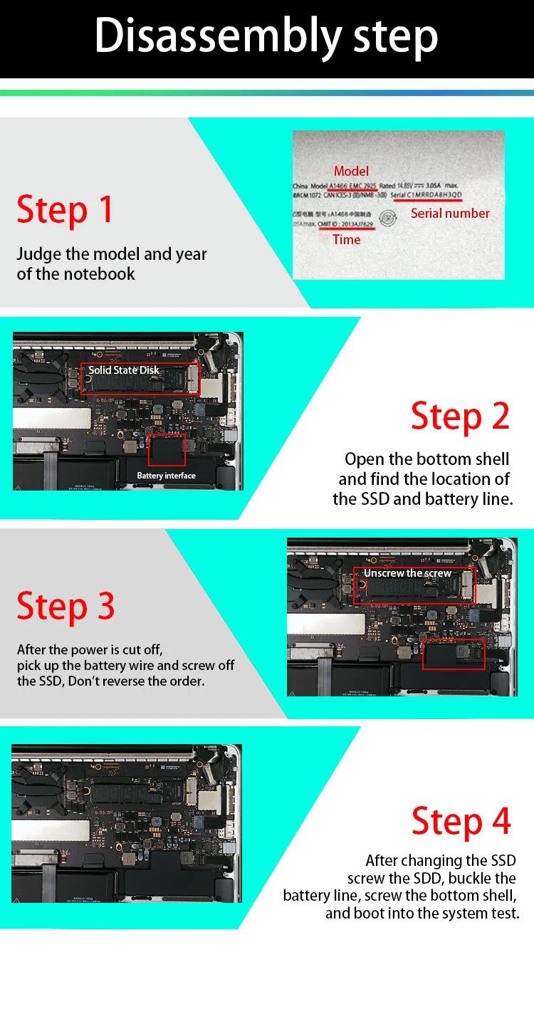 ⏩💻【Nota amable】 Debe actualizar el SSD original a la versión mac OS 10.13 o posterior antes de salir.El nuevo SSD no se reconocerá después del reemplazo si el SSD original está instalado 10.12 o el Mac OS anterior.