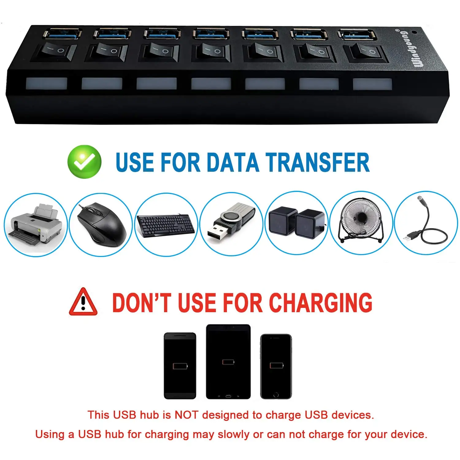 6.Diseñado con 4 puertos y 7 puertos, este concentrador compacto de alta velocidad USB3.0 es lo suficientemente pequeño para viajar y tiene suficiente cable para satisfacer sus necesidades de conectividad.