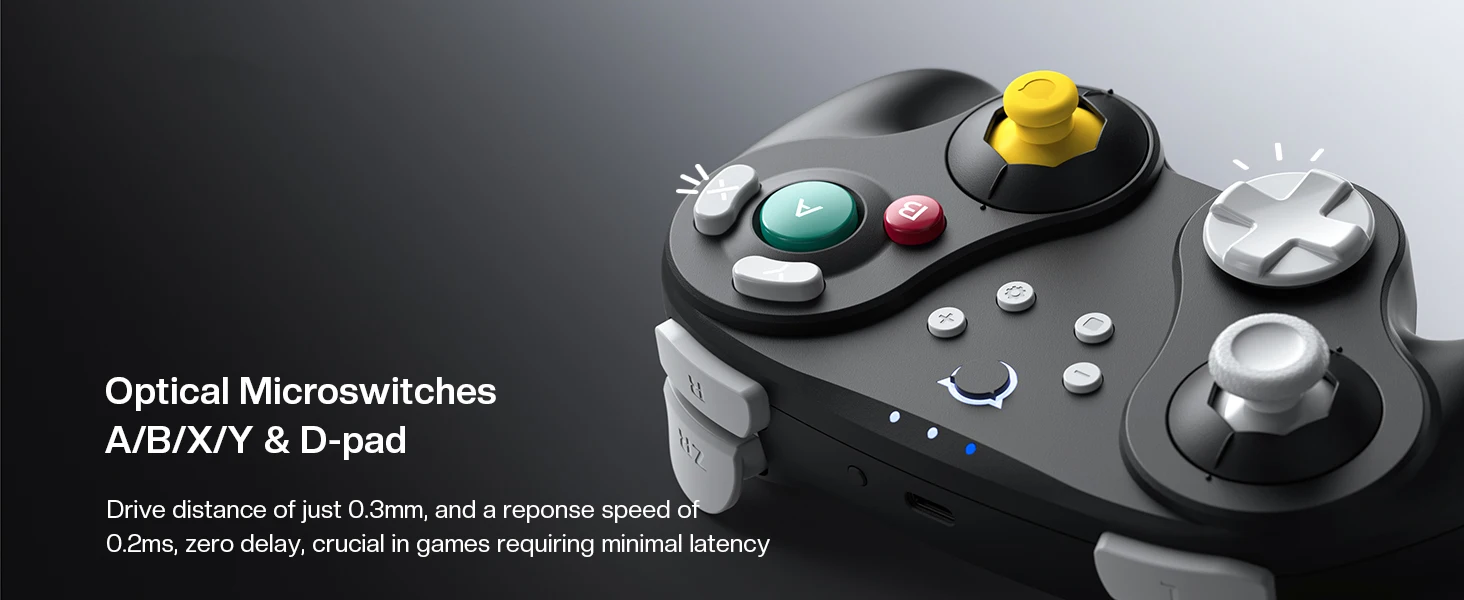 Microinterruptores ópticos A/B/X/Y y D-Pad: distancia de accionamiento de solo 0,3 mm, cero retrasos, crucial en juegos que requieren una latencia mínima.