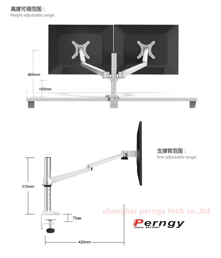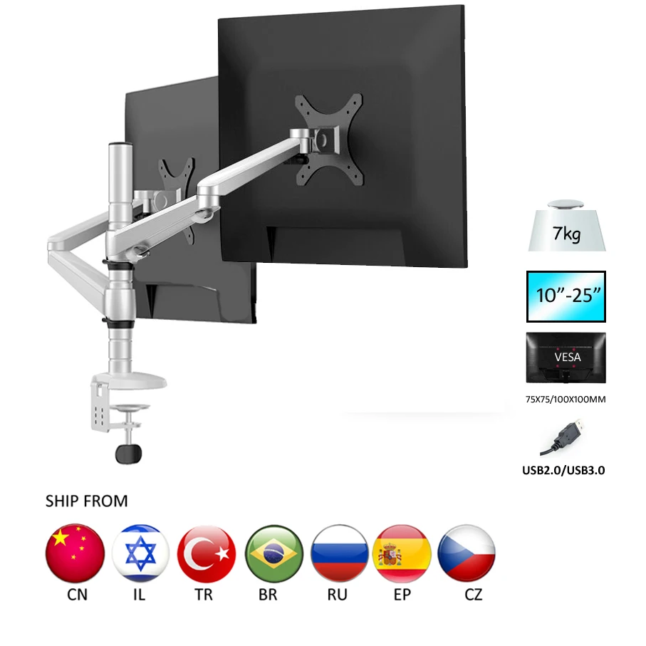 Comprar OA-4S Soporte de Monitor doble de brazo doble de escritorio de aleación de aluminio de 10 "-27" soporte de Base giratoria de brazo de montaje de pantalla LED de movimiento completo
