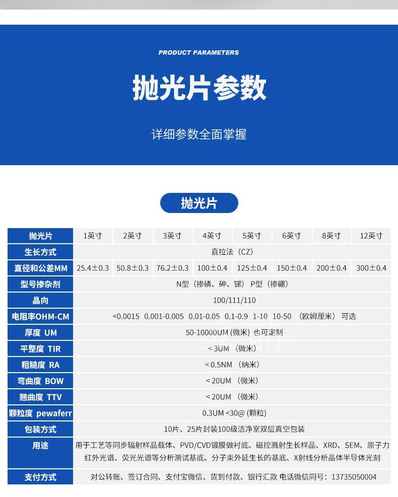 Tipo 1: Pulido de una sola cara, espesor 400 μm