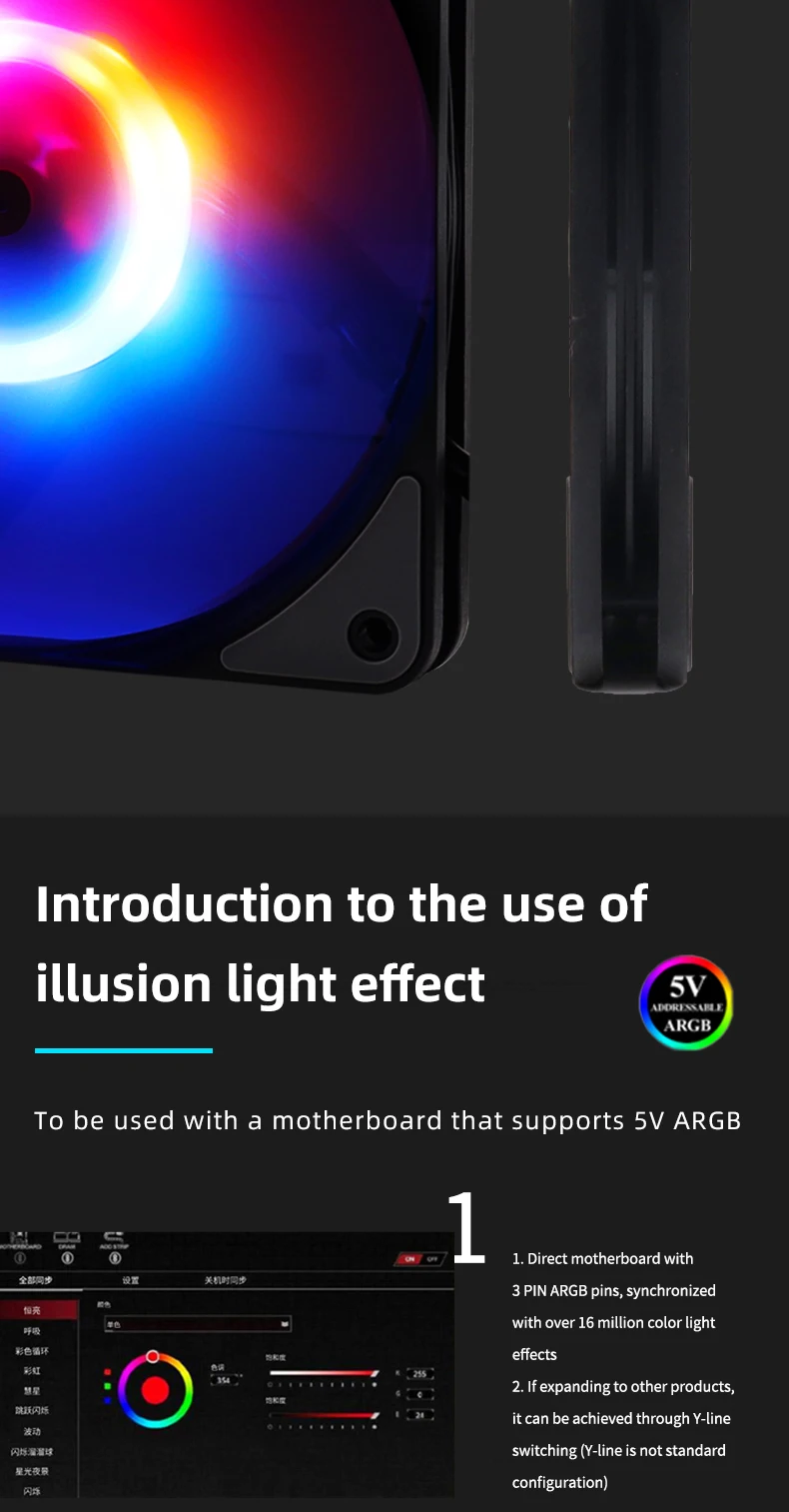 Comprar OCNG-ventilador de carcasa de OC-12015-XT, 5V, 3 pines, ARGB, 120mm, FDB, rodamiento, PWM, Control de temperatura, silencioso, a prueba de golpes