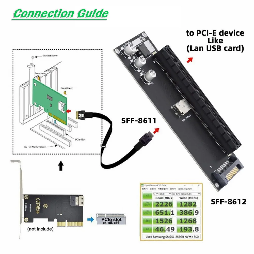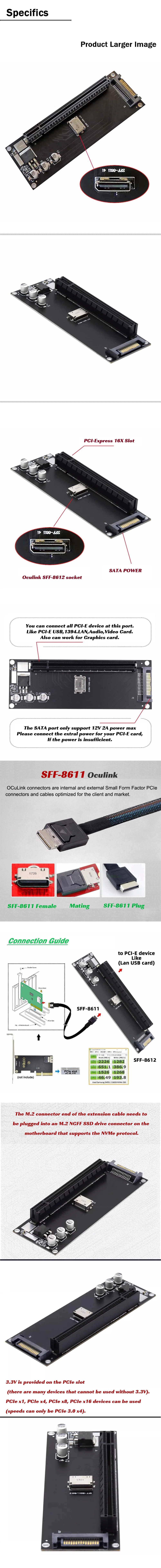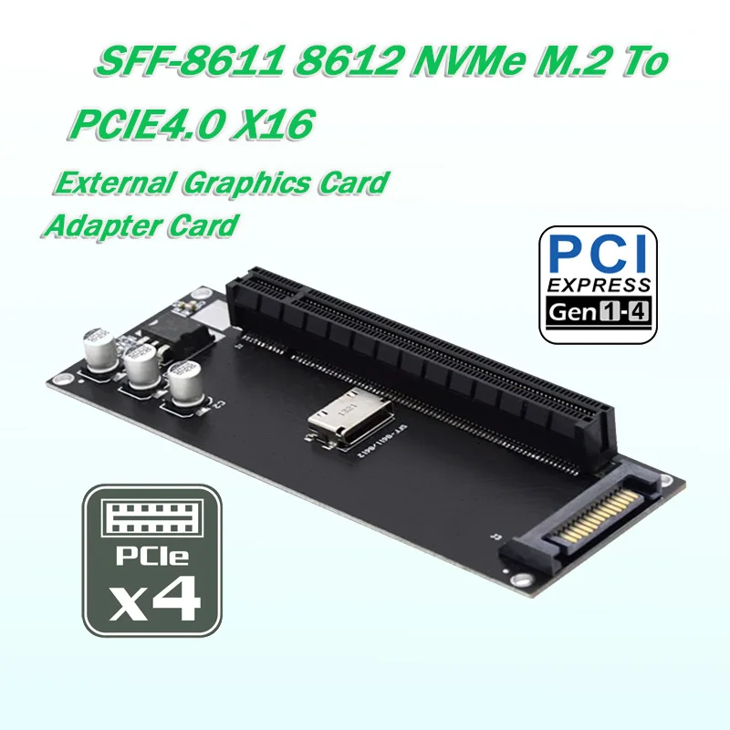 Comprar Oculink-adaptador pci-express para placa base, tarjeta gráfica con alimentación SATA de 12V 2A, 4x SFF-8611 8612 NVMe M.2 a PCI-E 4,0 X16 X4