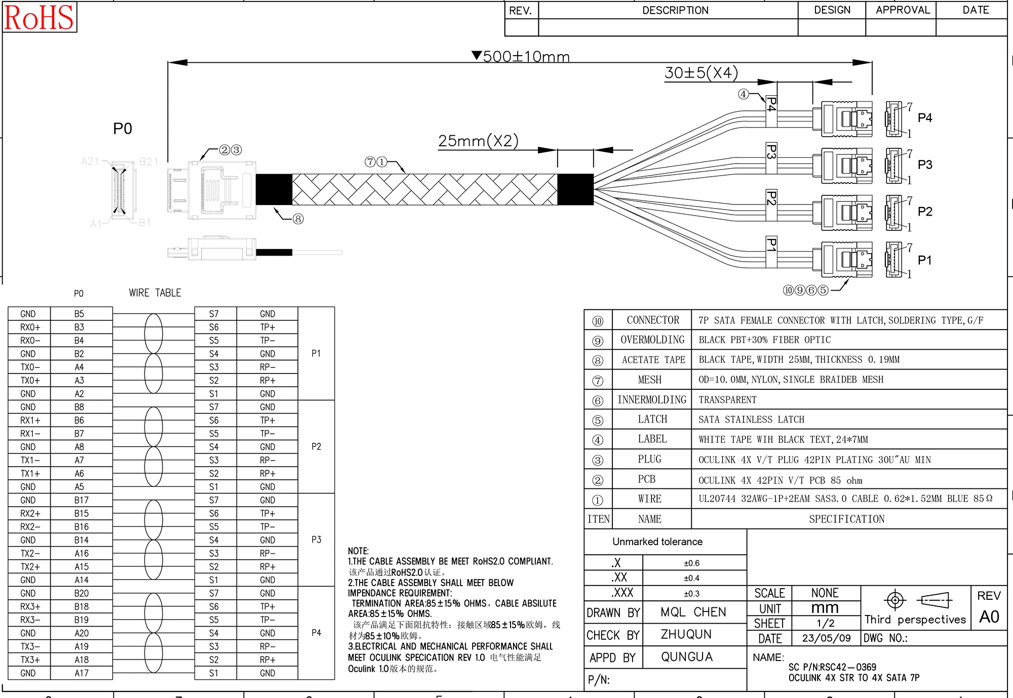 Cable de conversión de servidor OCuLink PCI-Express SAS de 4i a 4 SATA de confianza