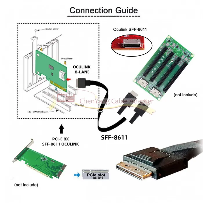 Por ejemplo, un plano posterior con un conector 4x a un controlador con un conector 8x de OCuLink.