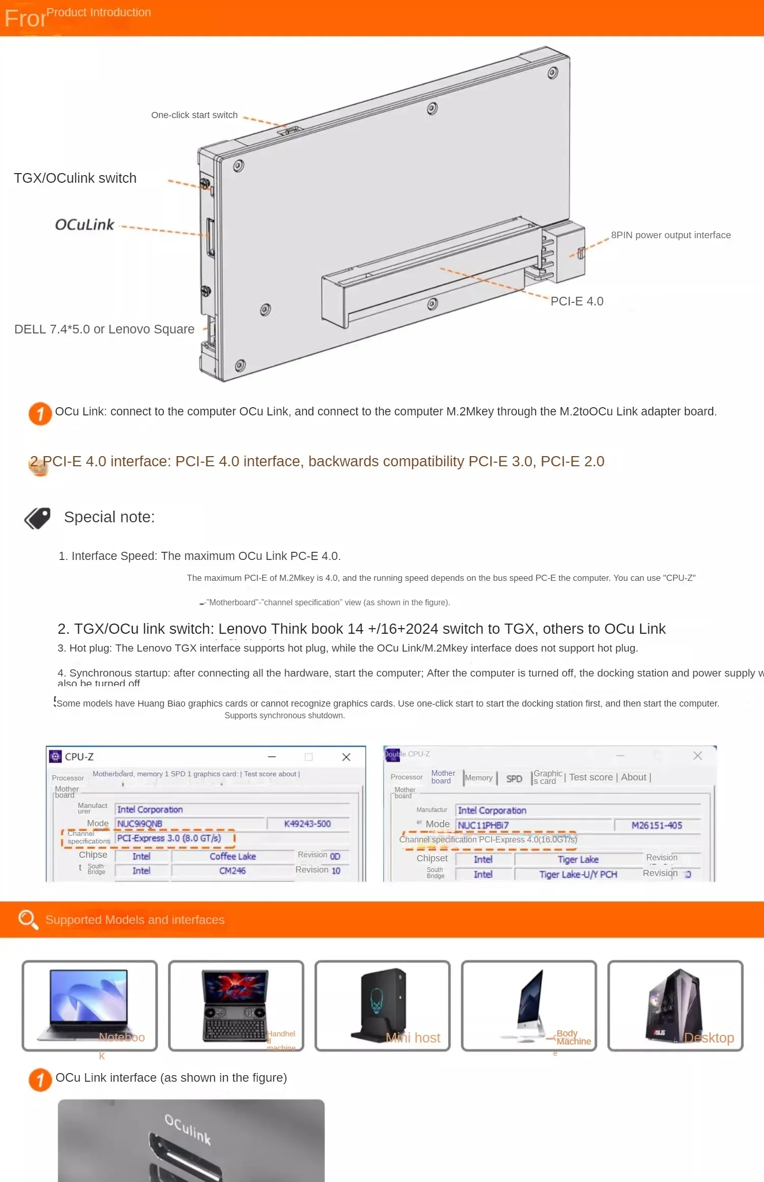 OCuLink / M.2 NVMe M Key GPU Dock portátil eGPU OCuP4GaN funda PCI-E 4,0 X4 Gen4 Oculink tarjeta gráfica externa AMD Nvidia