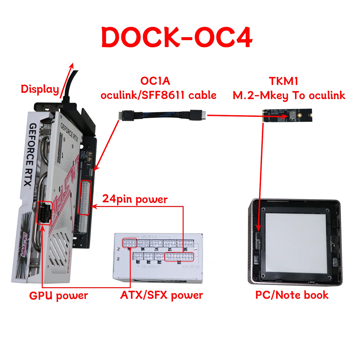 Funda para portátil eGPU para Oculink/M.2 NVMe Tarjeta gráfica externa GPU Dock PCIE 4.0 X4 Gen4 Adaptador de tarjeta de expansión ATX SFX para portátil