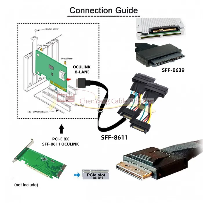 Comprar OCuLink PCIe PCI-Express SFF-8611 8x 8-Lane to Dual SFF-8639 U.2 4x SSD Data Active Cable 50cm