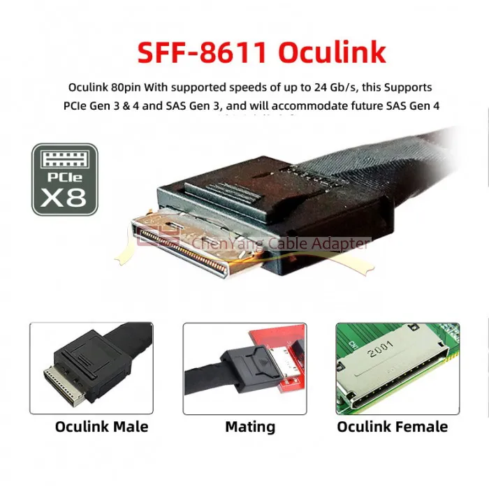 OCuLink: 8x80pin macho a doble macho U.2, 2 pines, 1, 2, 2, 2, 2, 2, 2