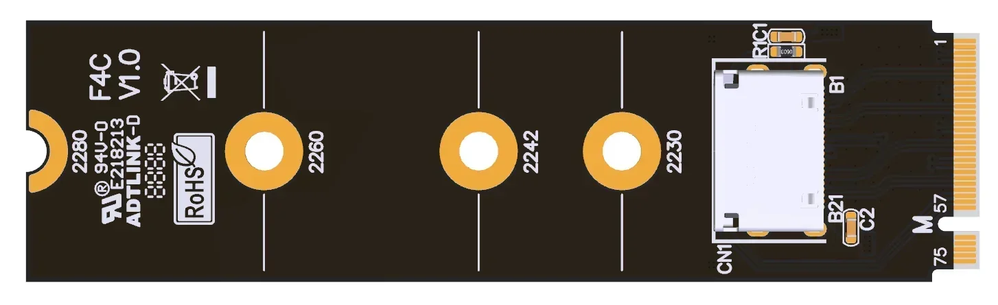 1.Puede admitir la interfaz M.2 NVMe hasta 2280 de altura y se puede cortar según sea necesario
