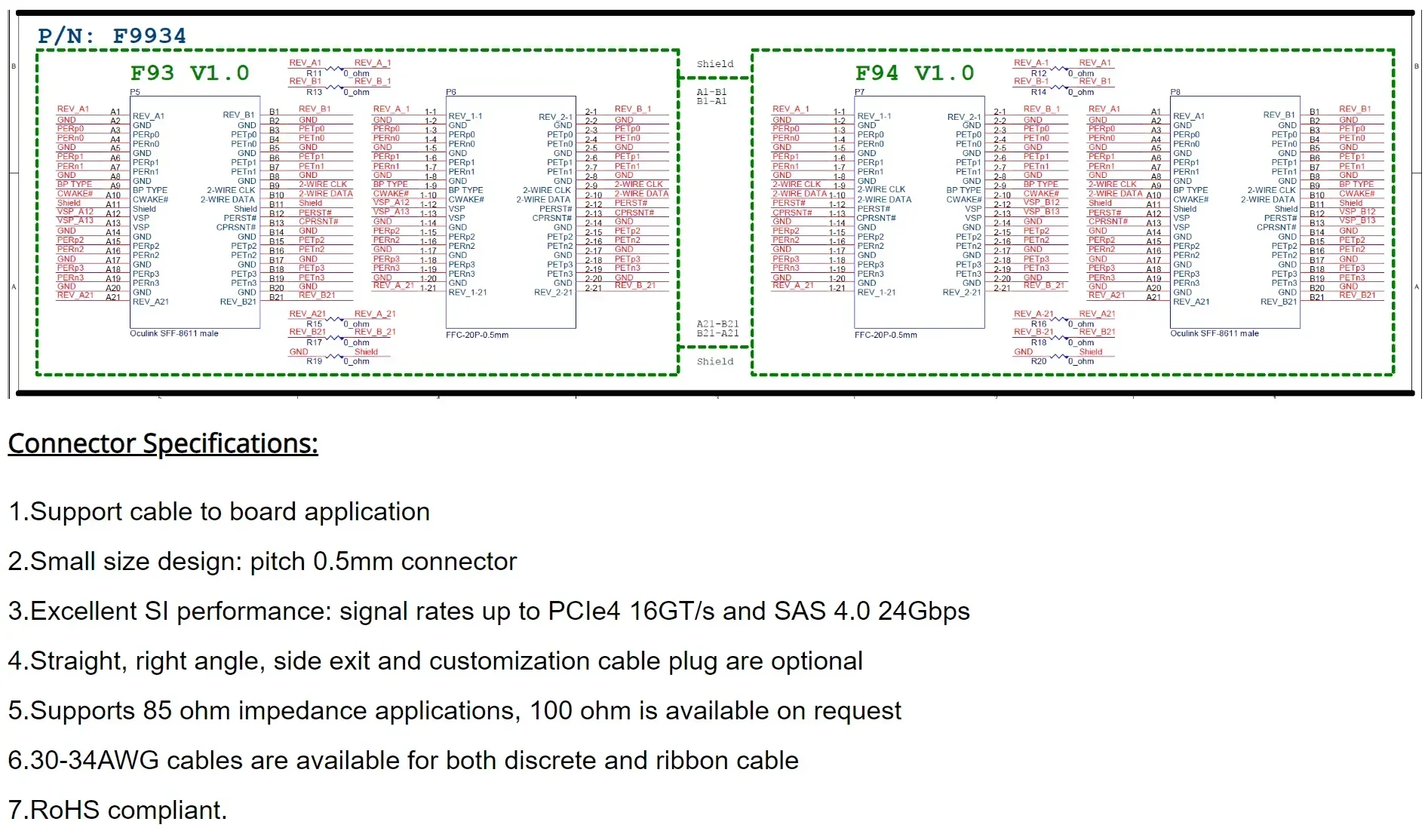 Número de piezaDescripciónAncho de bandaF9G-BK7Oculink-Adaptador hembra a PCIe 4,0x16, adaptador hembra + soportePCIe 4,0x4 (64G/BPS)F9G-F9934-BK7Oculink-Adaptador hembra a PCIe de 4,0x16 hembra, de la marca Oculink, de la serie+ +SoportePCIe 4,0x4 (64G/BPS)F9G-F9934-F4C-BK7Oculink-Adaptador hembra a PCIe de 4,0x16 hembra, de la marca Oculink, de la serie+ Mujer, mujerAdaptador+SoportePCIe 4,0x4 (64G/BPS)F9G-F4C-BK7Oculink-Adaptador hembra a PCIe de 4,0x16 hembra, de la marca Oculink, de la serie+ M.2 NVMe para Mujer, mujer+SoportePCIe 4,0x4 (64G/BPS)F9G:F9934: