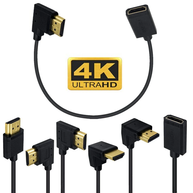 Super Soft Up Down Angled 90 Degree HDMI-Compatible Male to Female HDMI-2.0 HDTV 4K 2K @60Hz hd Light-weight Portable SLR camera Short Thin cable