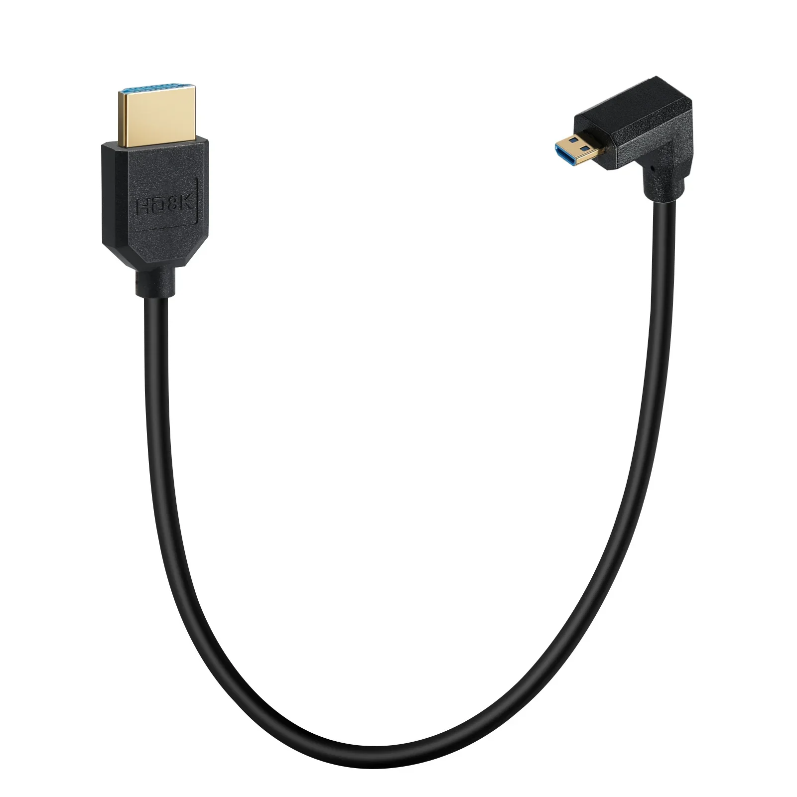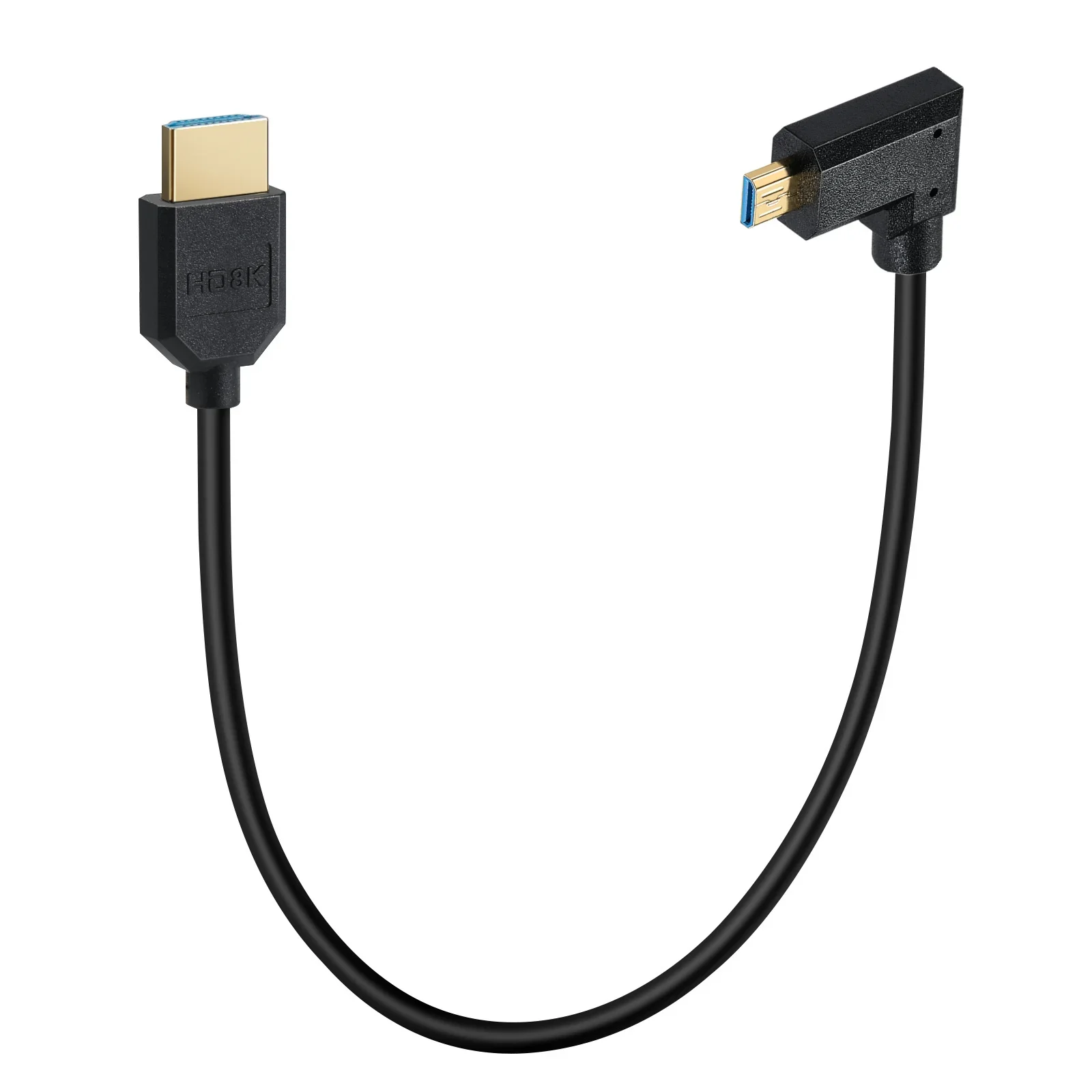 OD4.0mm Extremo delgado/fino 90° Ángulo 8K Ultra HD Cable HDMI de alta velocidad 0,3 M, Cable Micro HDMI a HDMI 2.1 8K, Cable HDMI de ultra alta velocidad 8K@60Hz 4K@120Hz 48Gbps Compatible con cámaras digitales, videocámaras y tabletas