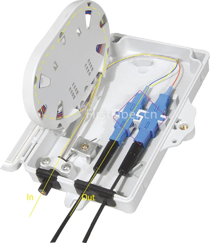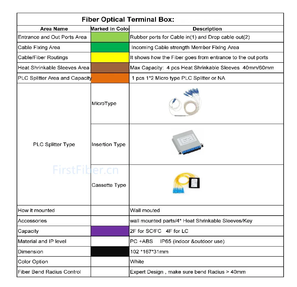 FirstFiber ODN FTTH Caja de terminación de fibra de 2 núcleos 2 puertos 2 canales caja divisora de toma de fibra Interior ExteriorPara cualquier tipo o compra a granel, póngase en contacto con: WISE (@)firstfiber.cn