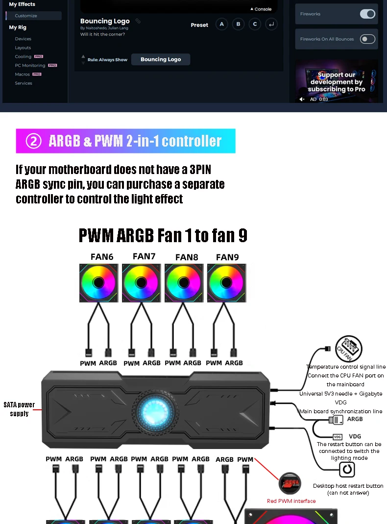 Comprar OEM Prism 6 PRO 120mm ventilador del chasis ARGB Synchro 3 lados Infinity Mirror ventilador de refrigeración del ordenador