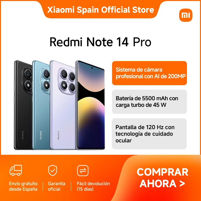 Official | Redmi Note 14 Pro, Sistema de cámara profesional con AI de 200 MP, Batería de 5500 mAh con carga turbo de 45 W, Pantalla de 120 Hz con tecnología de cuidado ocular