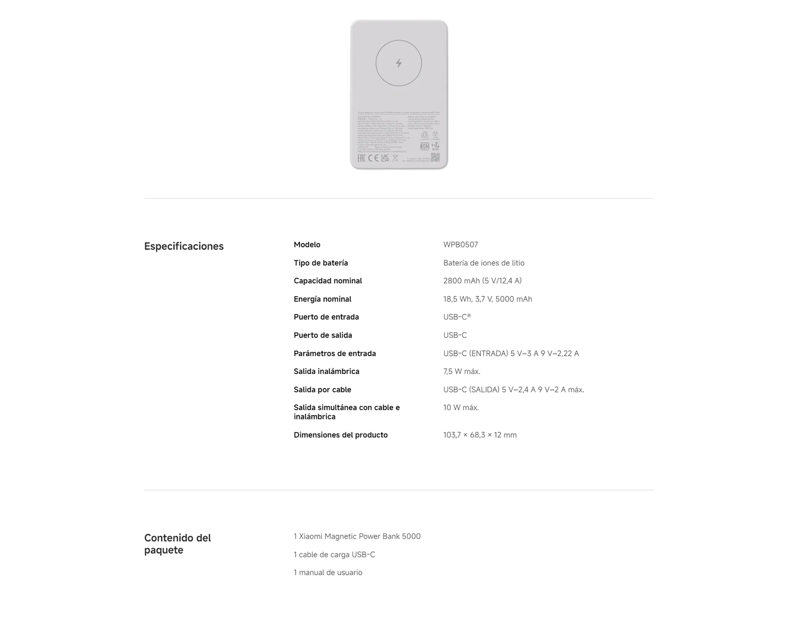 Comprar Official | Xiaomi Magnetic Power Bank 5000mAh Blanco 5000mAh Atracción magnética potente y precisa Carga inalámbrica con detección automática Cuerpo compacto de 12 mm Admite carga simultánea Capacidad de 5000 mAh Carga rápida bidireccional USB-C