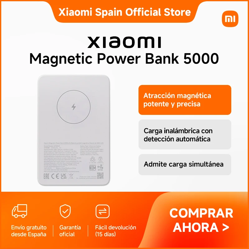 Comprar Official | Xiaomi Magnetic Power Bank 5000mAh Blanco 5000mAh Atracción magnética potente y precisa Carga inalámbrica con detección automática Cuerpo compacto de 12 mm Admite carga simultánea Capacidad de 5000 mAh Carga rápida bidireccional USB-C
