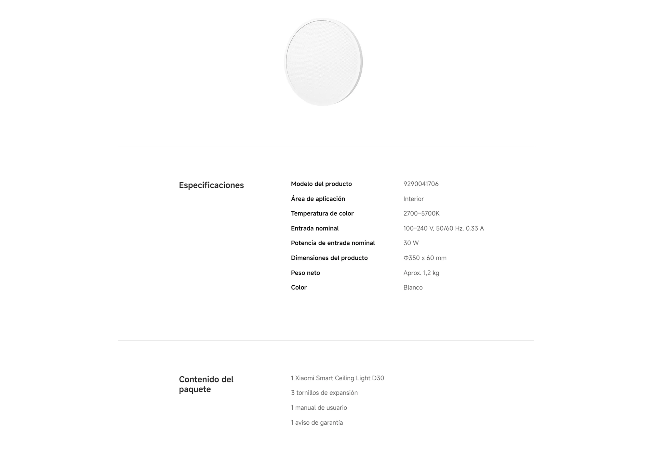 Official | Xiaomi Smart Ceiling Light D30 LED de espectro completo personalizado* Alto índice de reproducción cromática Ra97* Lente ultracompacta Xiaomi personalizada Diseño antirreflejos Resistencia al polvo IP50*