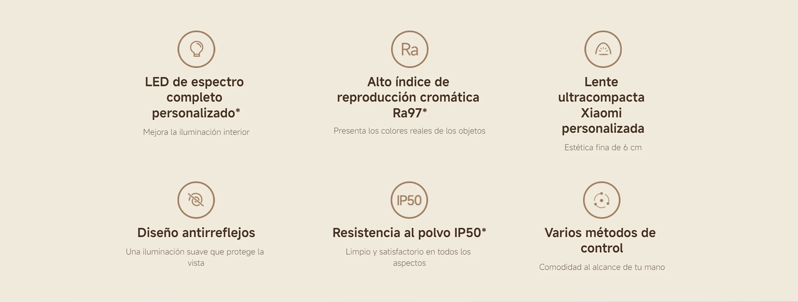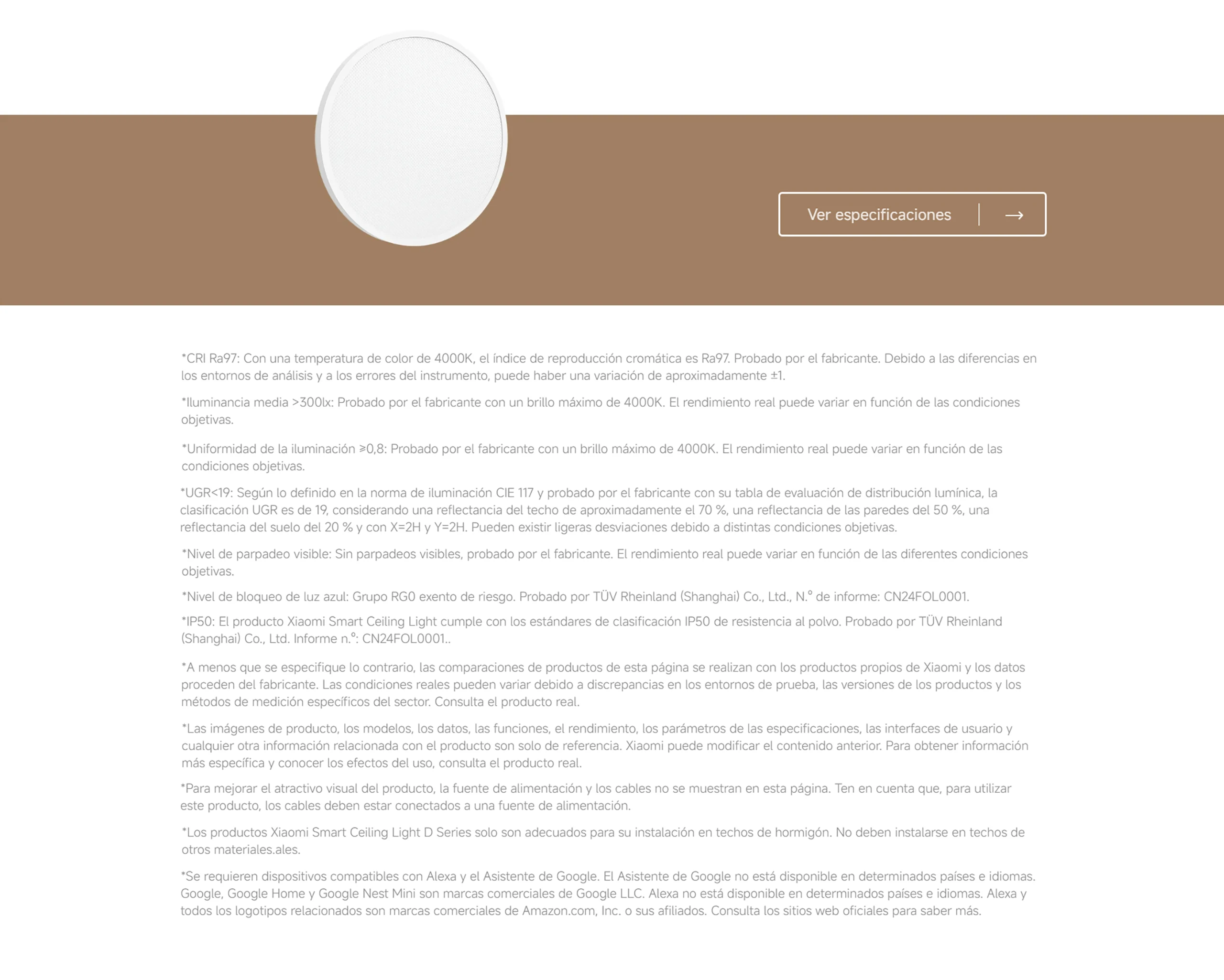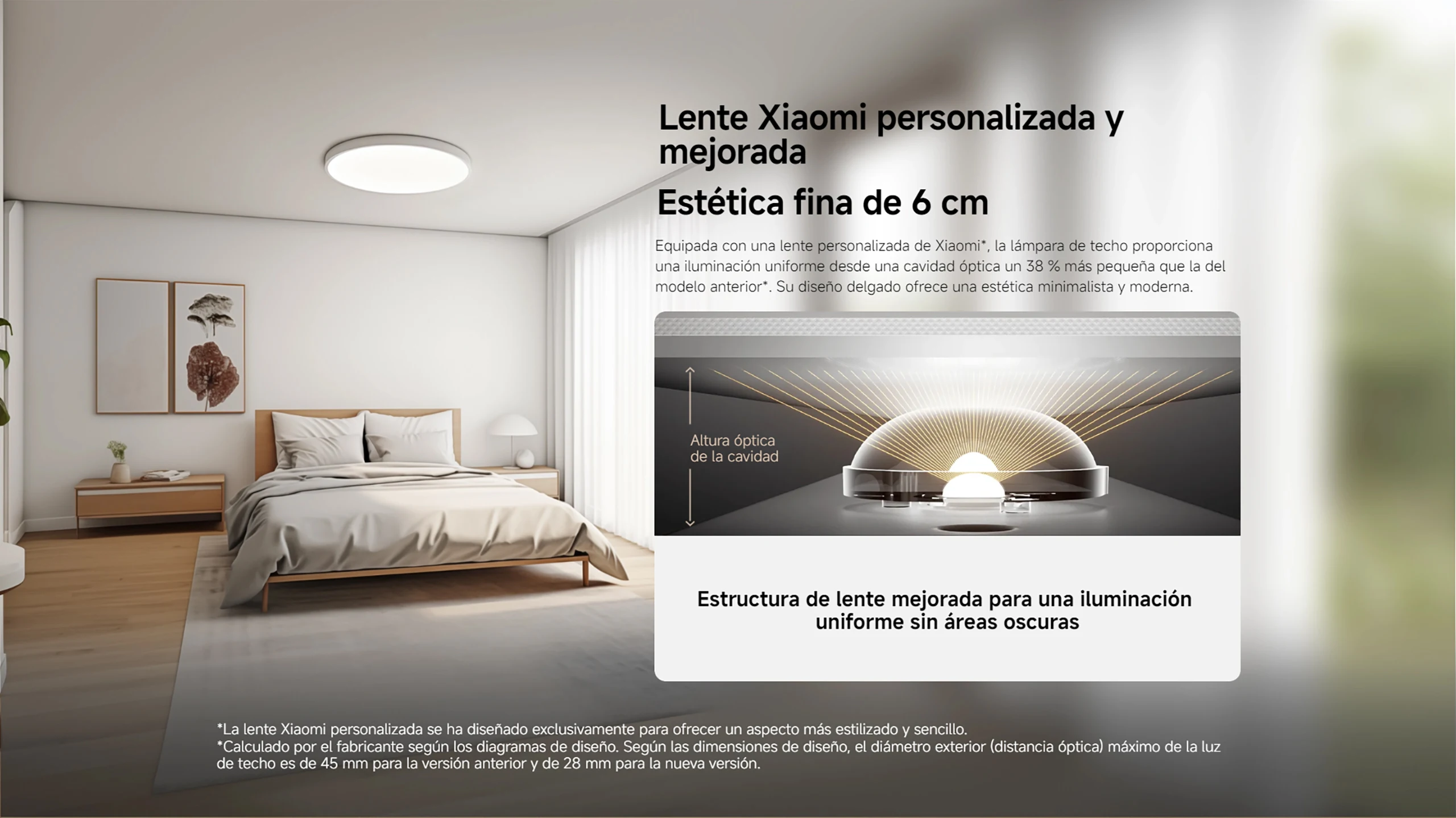 Official |Xiaomi Smart Ceiling Light D40 LED de espectro completo personalizado* Alto índice de reproducción cromática Ra97* Lente ultracompacta Xiaomi personalizada Diseño antirreflejos Resistencia al polvo IP50*