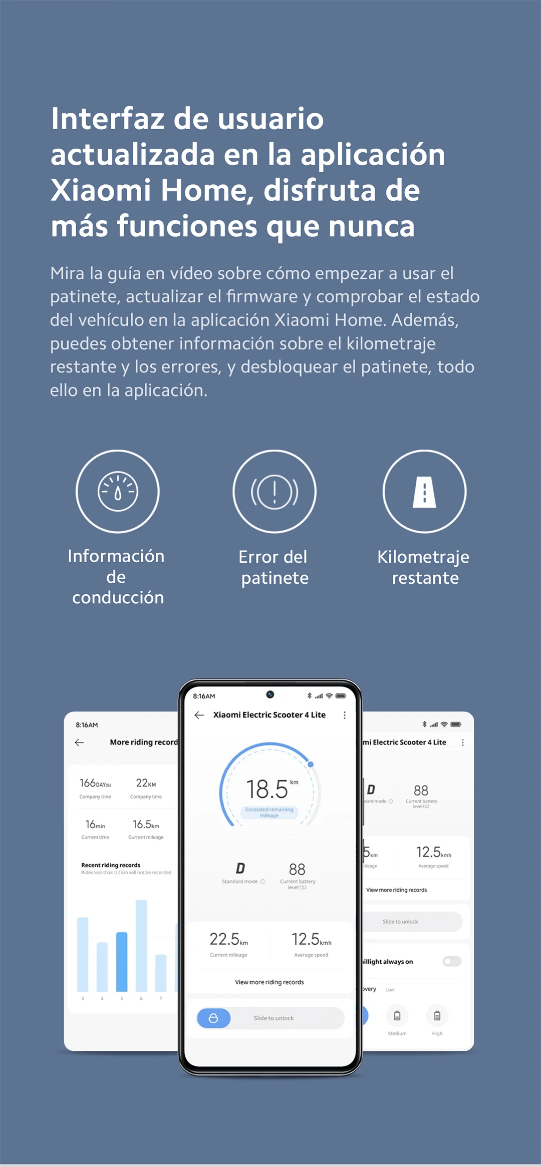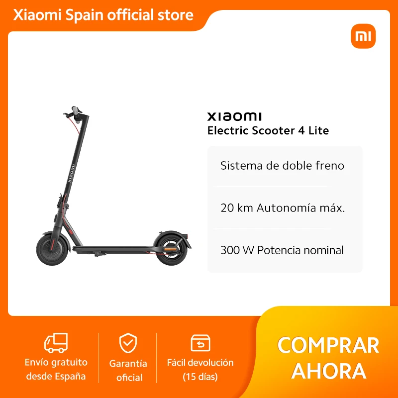 Comprar Official|Xiaomi Electric Scooter 4 Lite|Sistema de doble freno|20 km Autonomía máx|300 W Potencia nominal