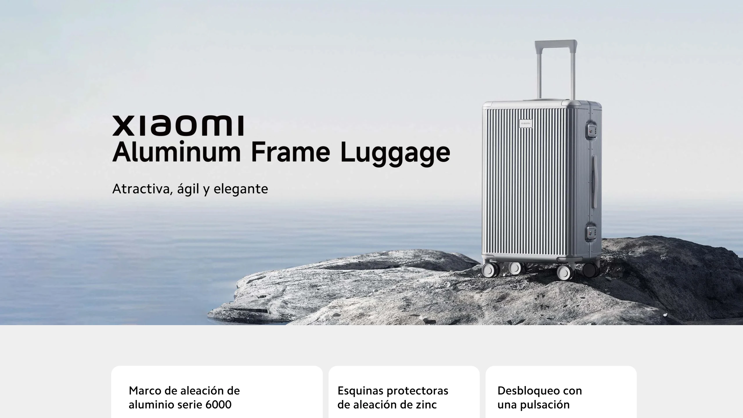 Oficial | Xiaomi Aluminum Frame Luggage, Marco de aleación de aluminio serie 6000, Desbloqueo con una pulsación, Esquinas protectoras de aleación de zinc