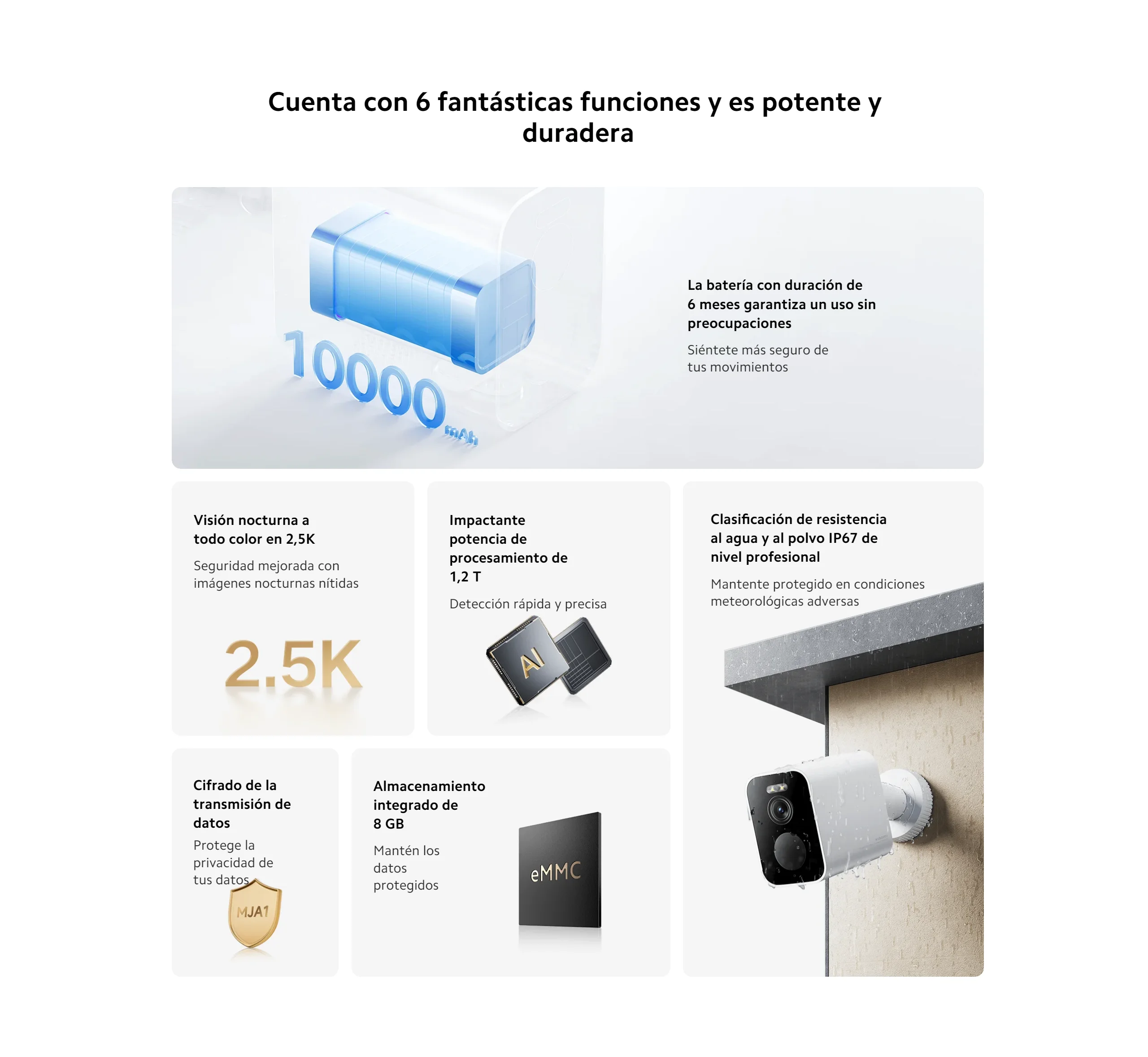 Es la segunda cámara BW500que compro. Buenas calidad de imagen, fácil montaje, la duración de la batería también muy correcta. La primera lleva instalada desde primeros de agosto y tiene un 66% de batería. Me queda por saber qué pasará cuando se pasen los meses promocionales en los que se graban los clips de detección en la app. Esta cámara tiene casi 8Gb de memoria interna, pero no sé si se podrán grabar los clips en local y verlos a través de la app sin una suscripción. Espero que sí, porque sino no tiene sentido comprarla.