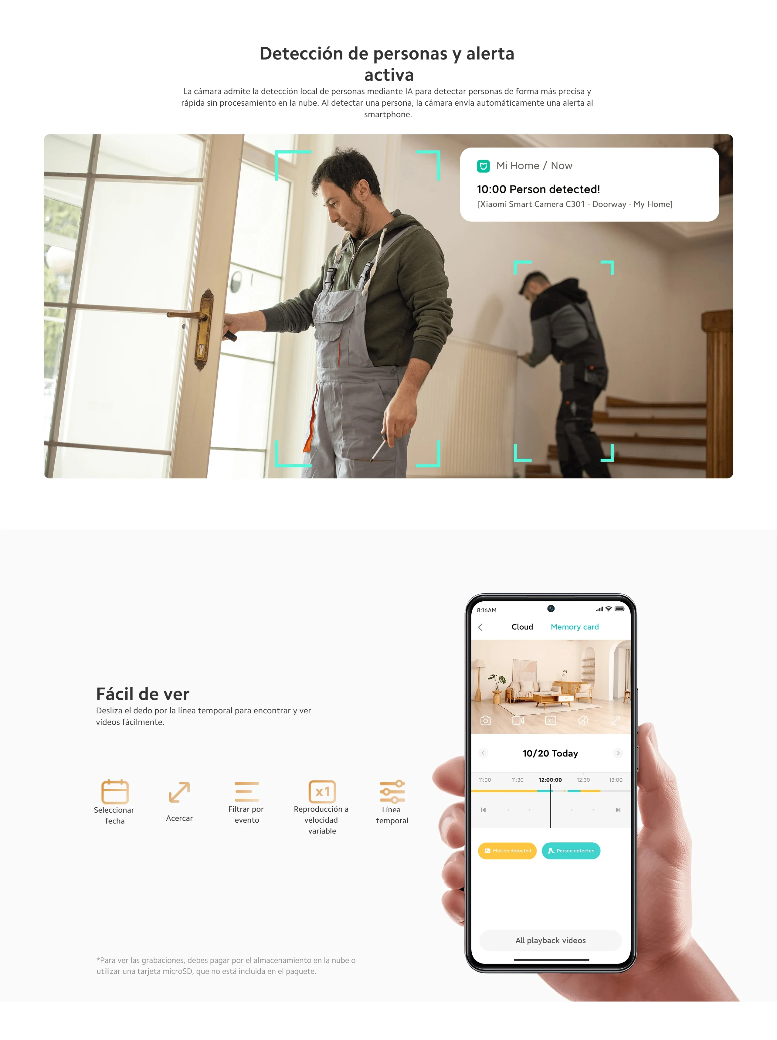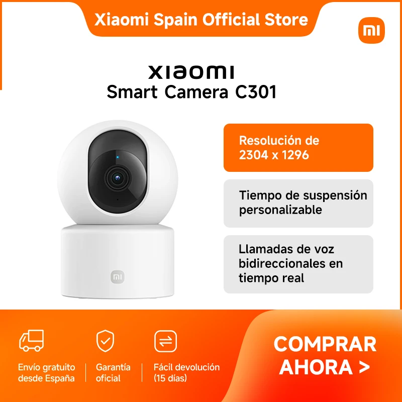 Comprar Oficial | Xiaomi Smart Camera C301, Resolución de 2304 x 1296, Tiempo de suspensión personalizable, Llamadas de voz bidireccionales en tiempo real