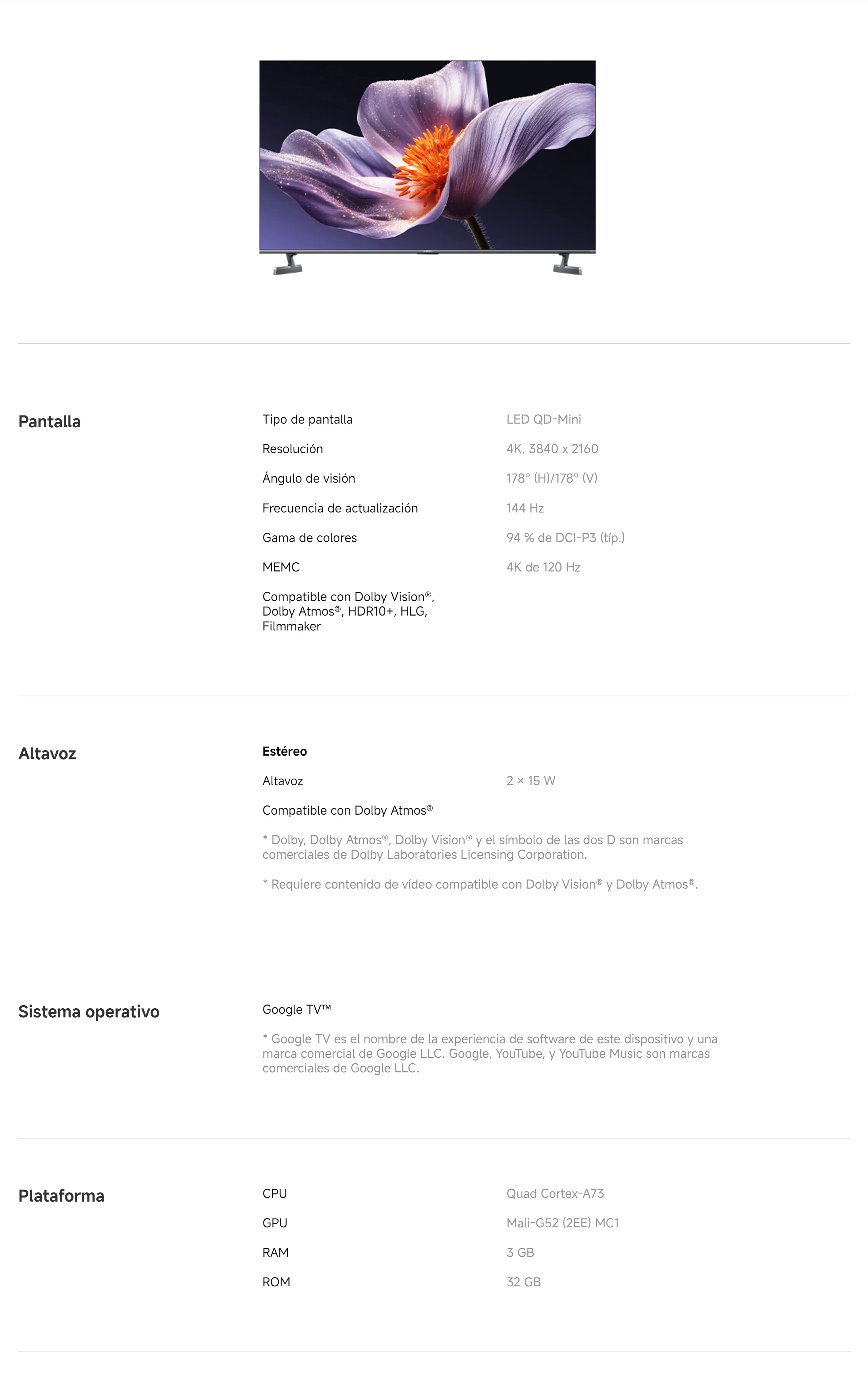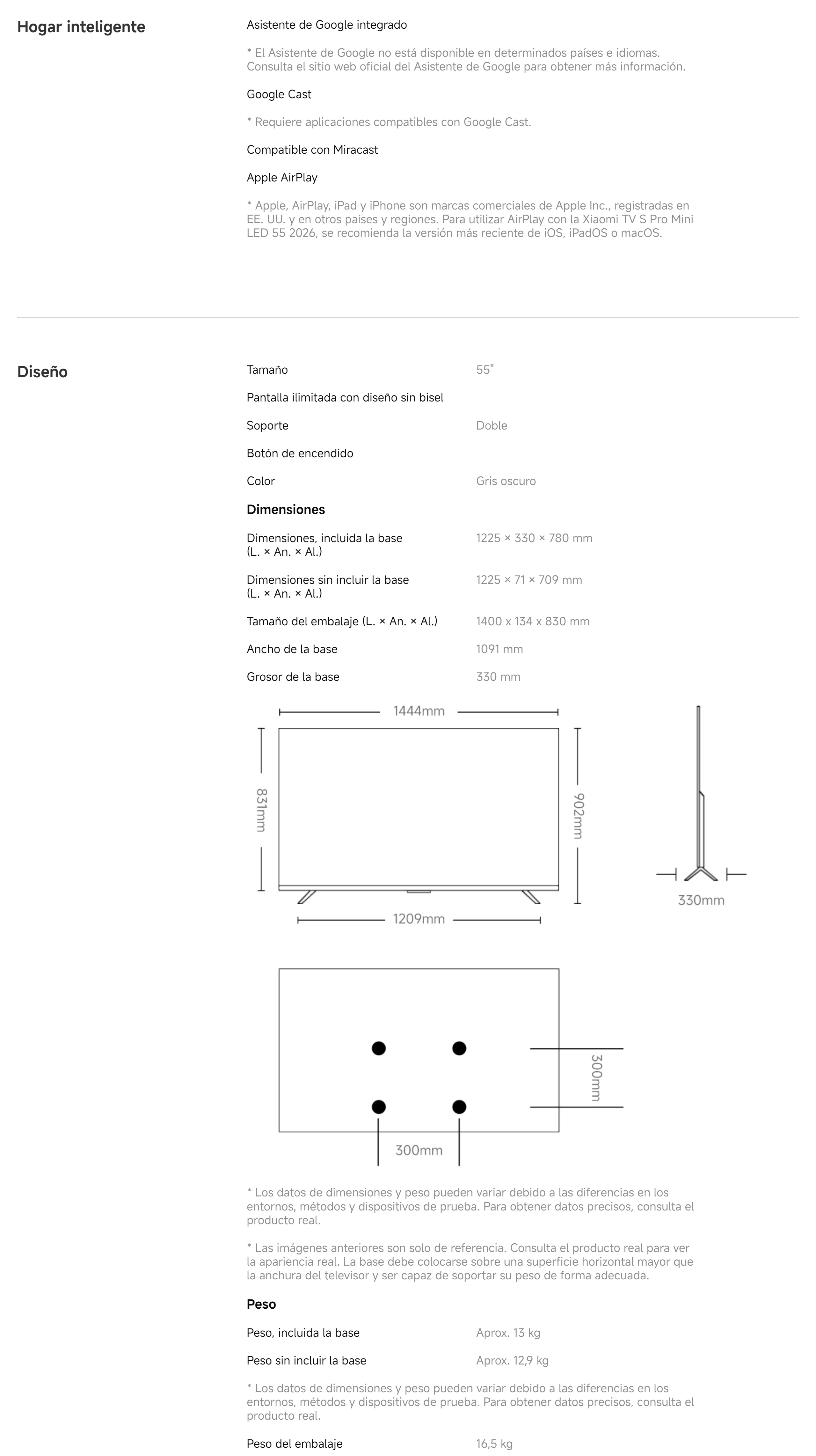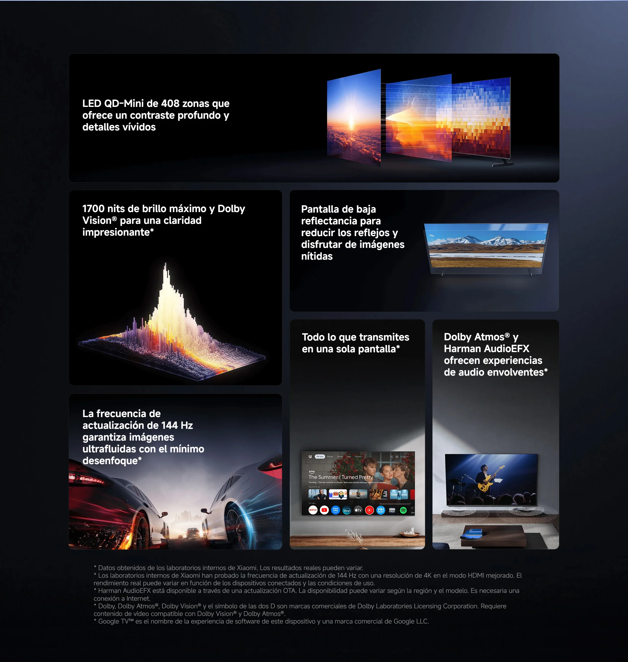 Comprar Oficial | Xiaomi TV S Pro Mini LED 55, Zonas avanzadas de Mini LED, Brillo máximo de 1700 nits, Motor con atenuación global
