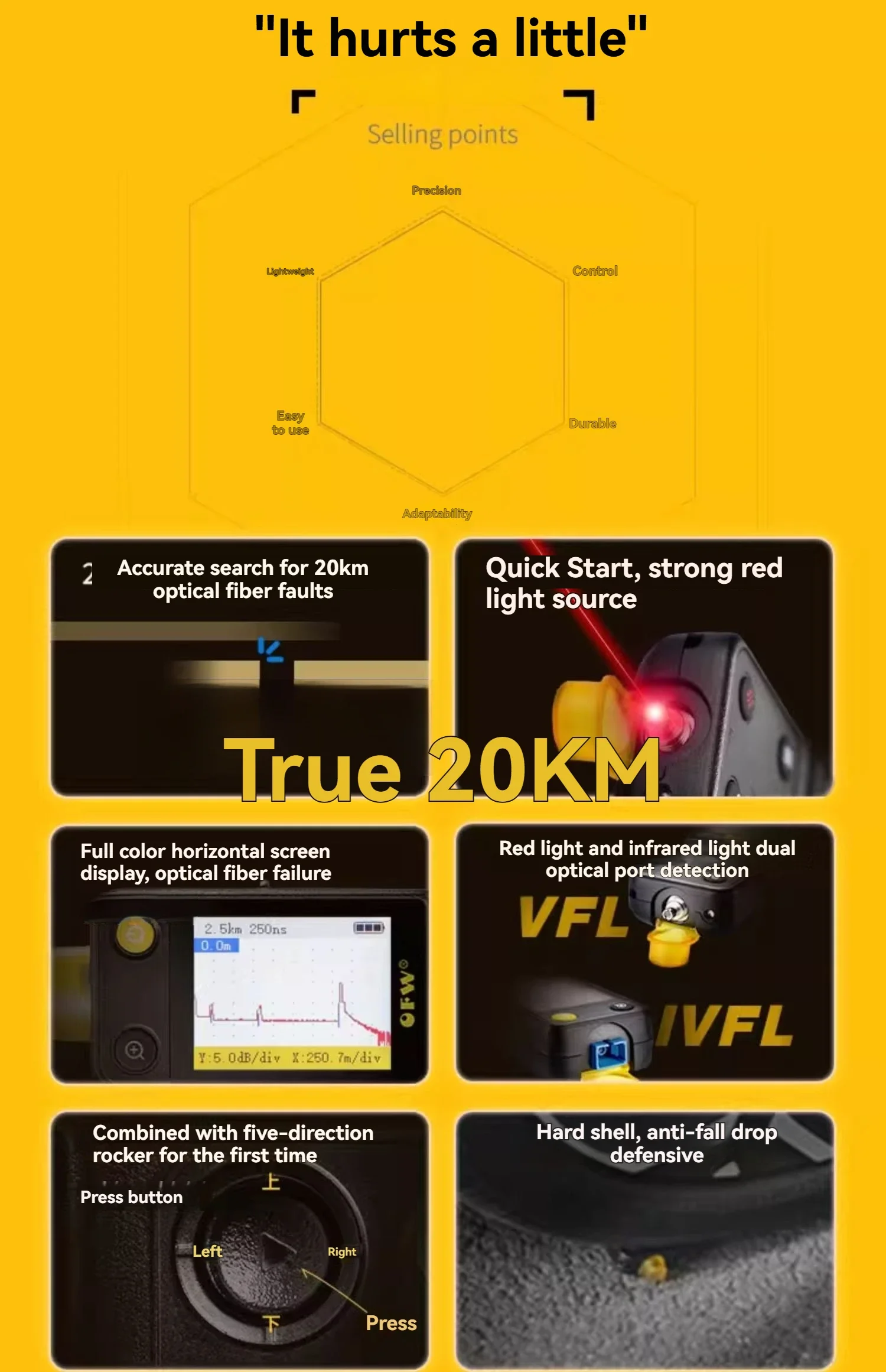 El dispositivo funciona como se esperaba; solicité la versión APC. Recibí la versión UPC con un conector convertidor UPC-APC. Láser rojo de 10mW. La mayoría de los botones tienen dos funciones, al presionarlos durante más tiempo. Activas la otra función. Destinado a: Solucionadores de problemas. Básicamente, ¿dónde se rompió la fibra? Este dispositivo no genera informes de prueba. ¿Por qué solo cuatro estrellas? El dispositivo es excelente. Pero el envío fue un desastre, por lo que pierdes una estrella. Honestamente, si hubiera sabido desde el principio que lo enviarían con ese transportista, no lo habría comprado. Vendedor, por favor utilice empresas de transporte confiables.