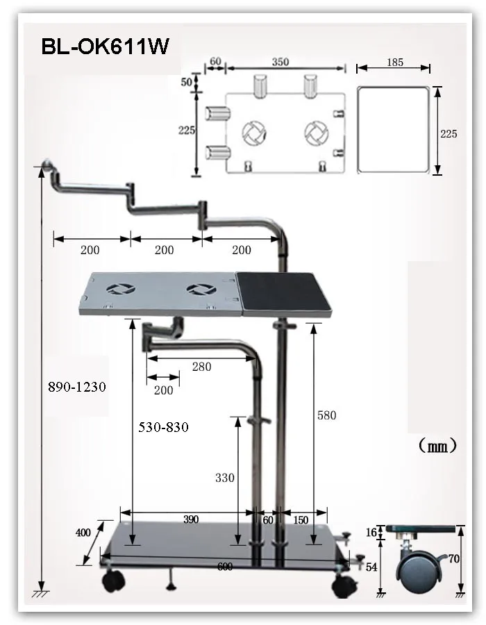 Bandeja portátil con tamaño de ventilador: 350x225mm se puede extender a 410x275mm