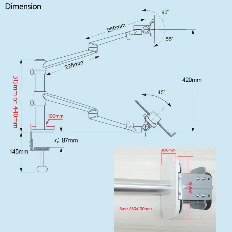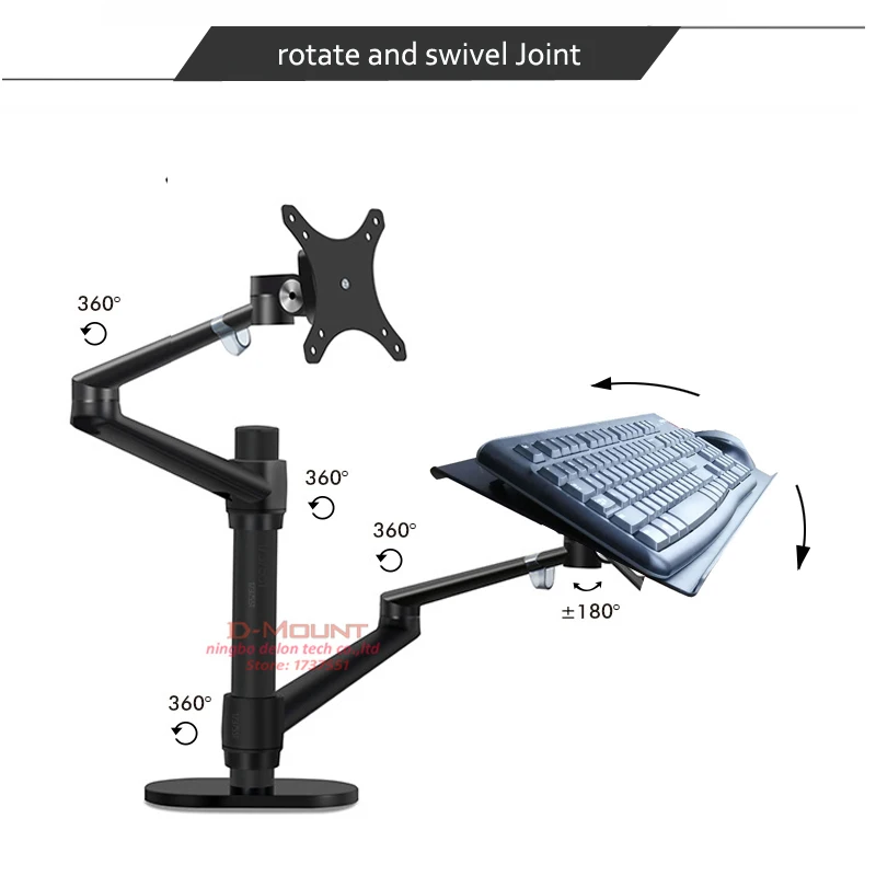 Comprar OL-10L-KYM aluminio plata Ergonomía 10 "-32" soporte para monitor + bandeja para teclado soporte de escritorio soporte de doble brazo