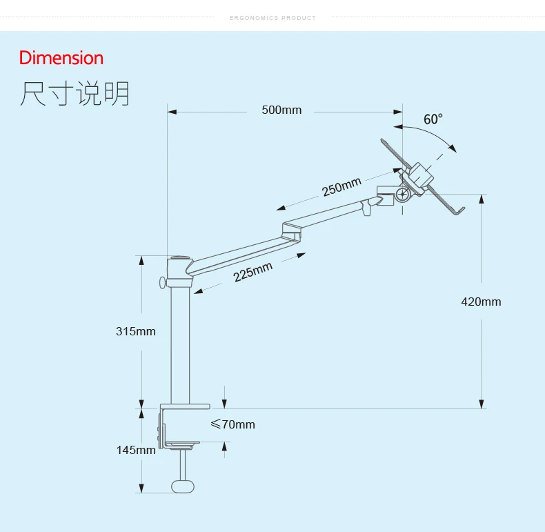Instalación de la abrazadera: Espesor del escritorio=70mm