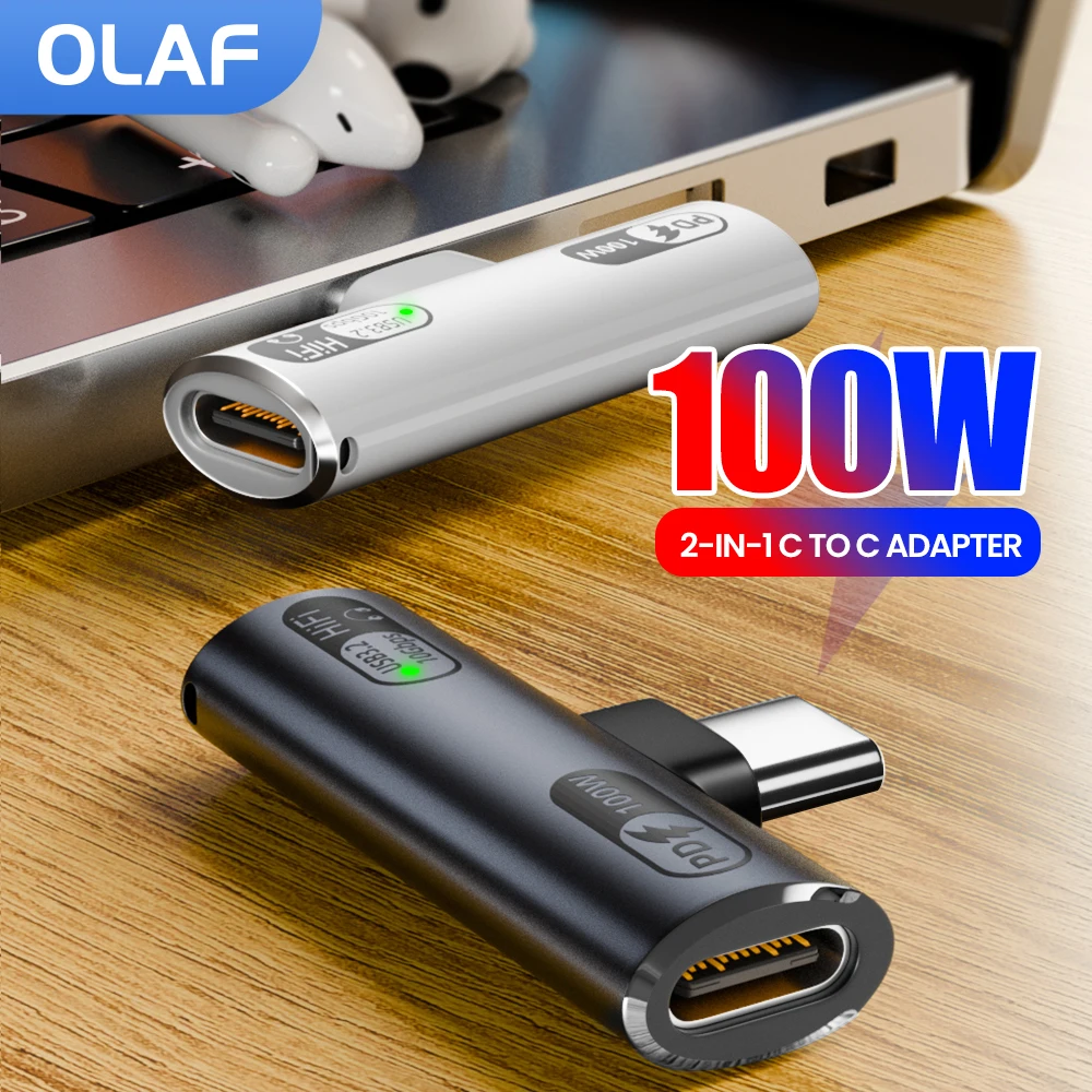 Comprar Olaf 2 en 1 adaptador OTG tipo C a tipo C adaptador de auriculares PD100W convertidor USB C de carga rápida para tabletas Samsung iPhone 15 16