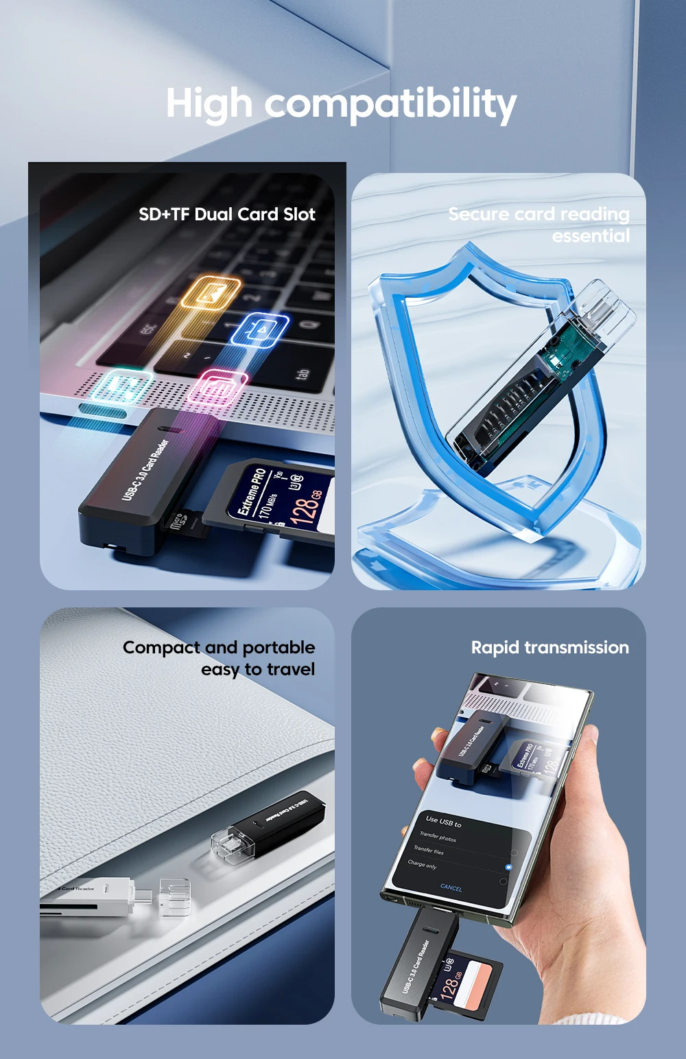Olaf 2 en 1 Mini lector de tarjetas tipo C a SD + lector de tarjetas TF lector de tarjetas de memoria SD de alta transferencia para PC portátil accesorios adaptador SD
