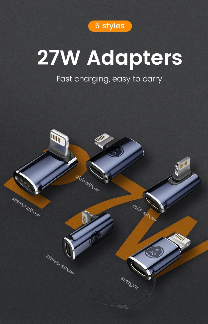 Comprar Olaf-Adaptador tipo C A Lightning, Conector de carga rápida, macho a hembra USB C, adaptador para iPhone a IOS, 27W, PD