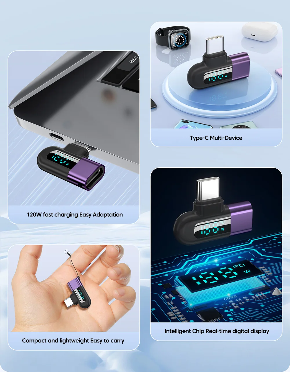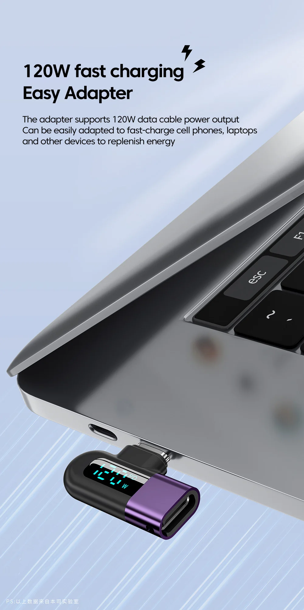 Pantalla digital de codo de 120 W Adaptador tipo C a tipo C