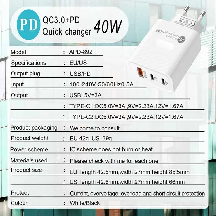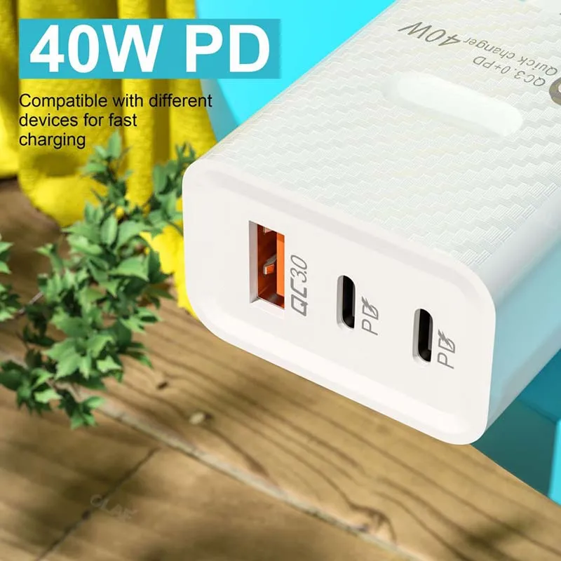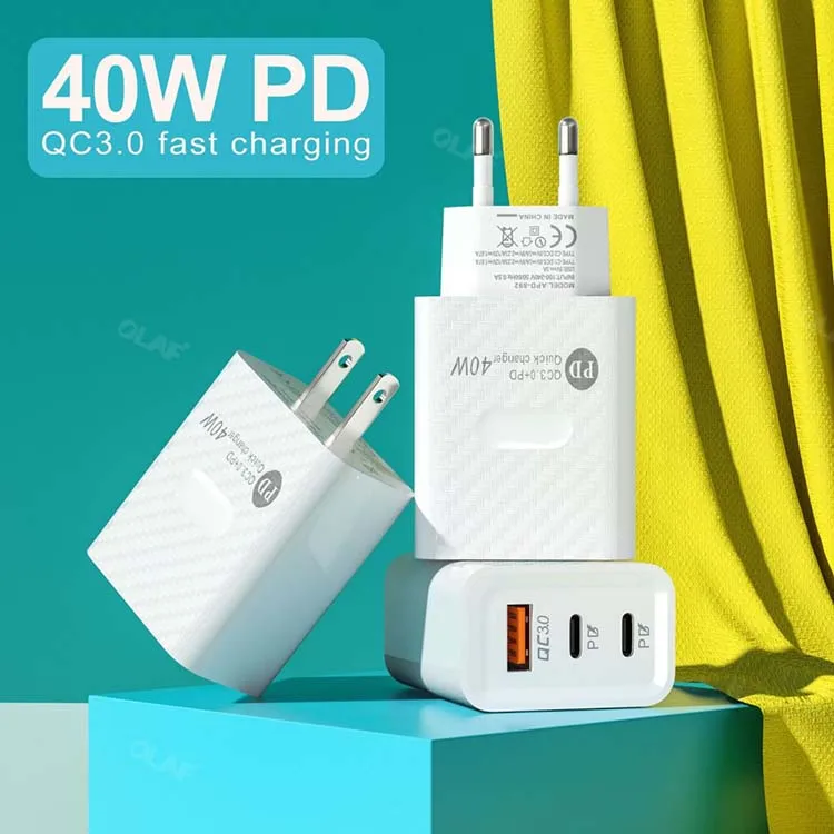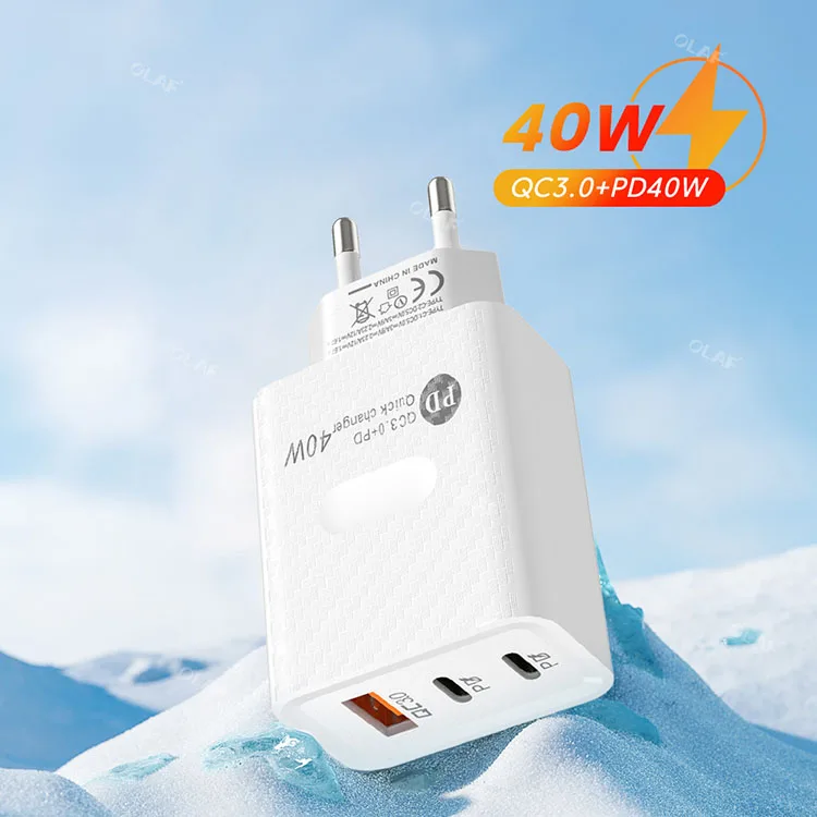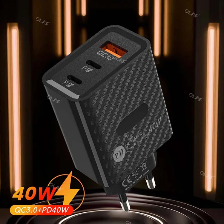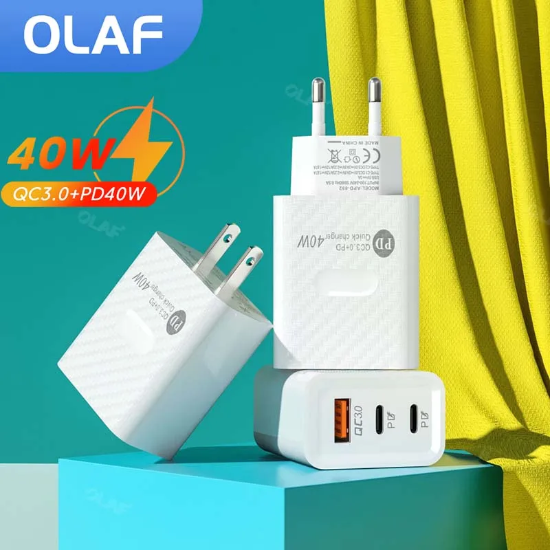 Comprar Olaf-cargador rápido de 40W, adaptador de 3 puertos tipo C, PD, QC 3,0, USB C, para iPhone 13, 14 Pro Max, Huawei, Xiaomi, Samsung