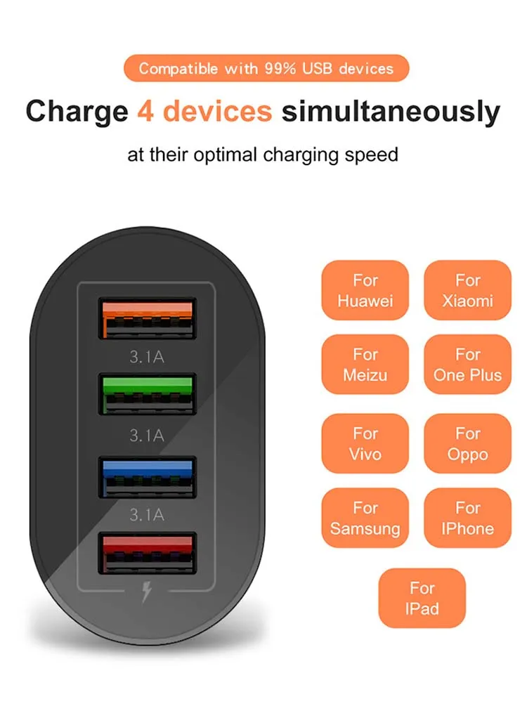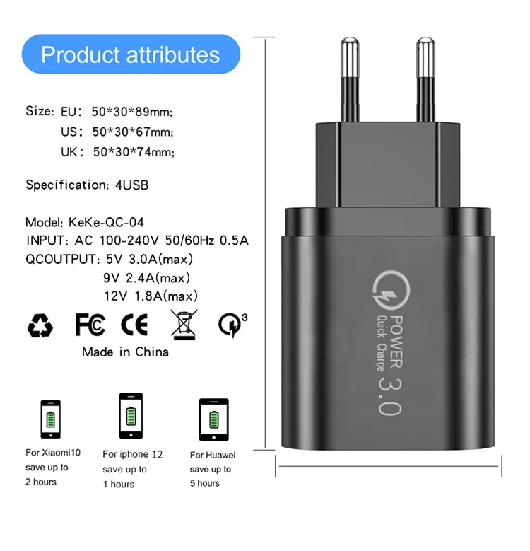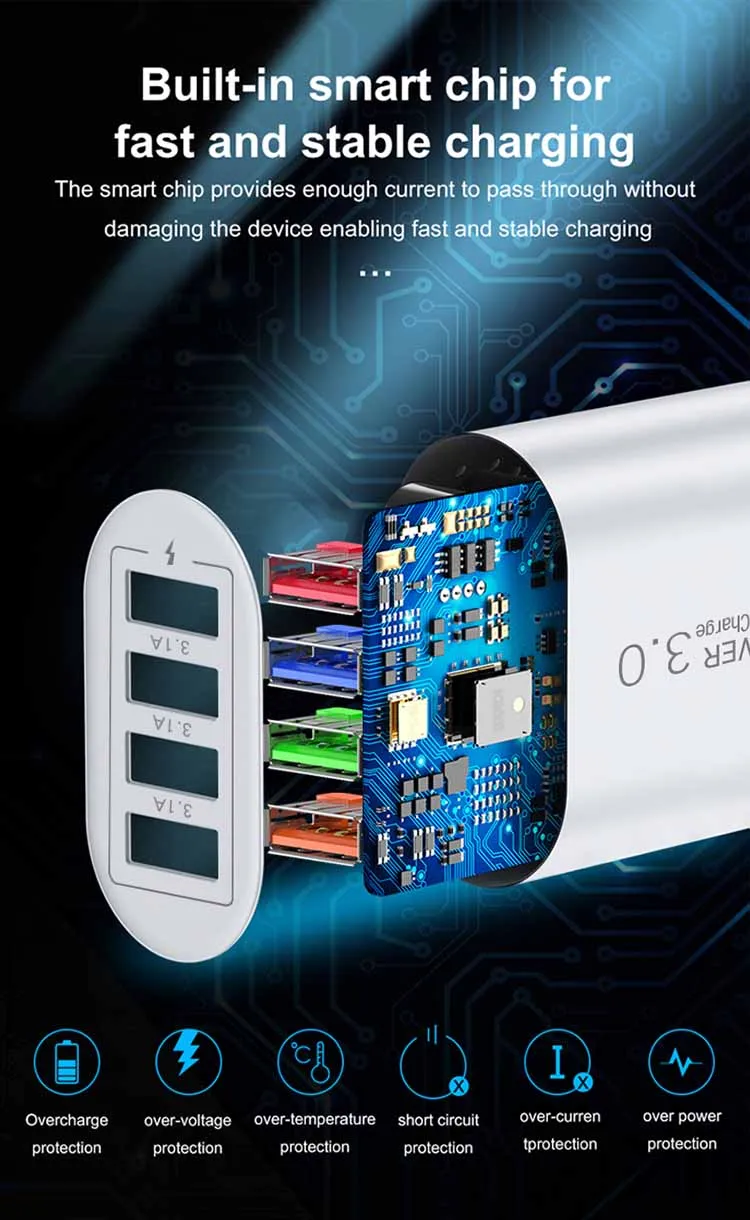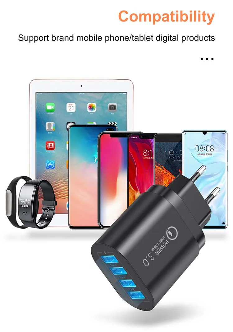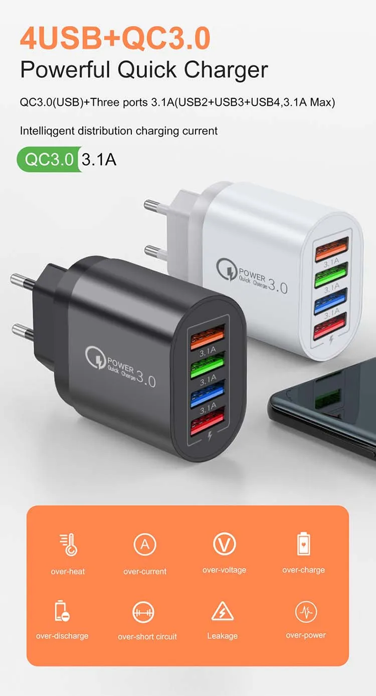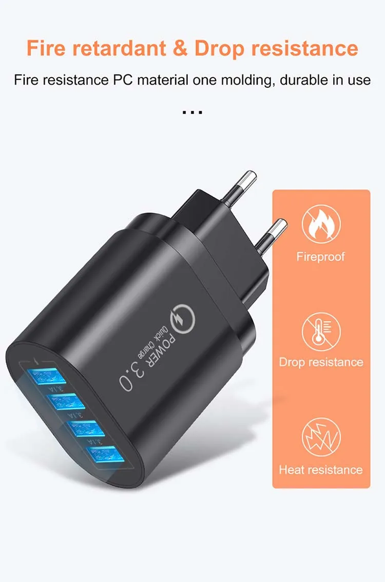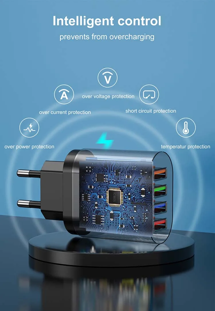 Comprar Olaf-cargador USB de carga rápida 3,0 para teléfono móvil, adaptador de carga rápida de 60W, 4 puertos, para iPhone 13, Samsung, Huawei, Xiaomi
