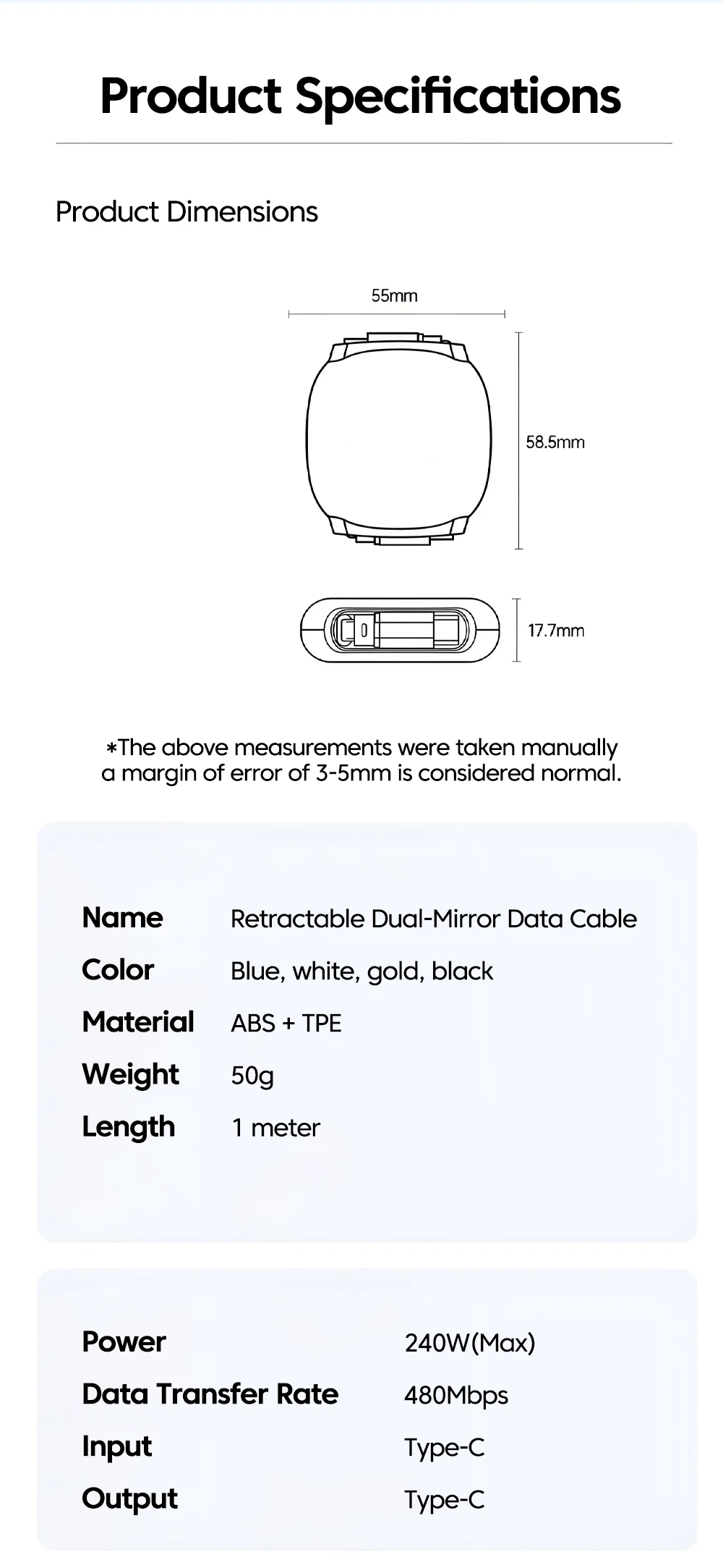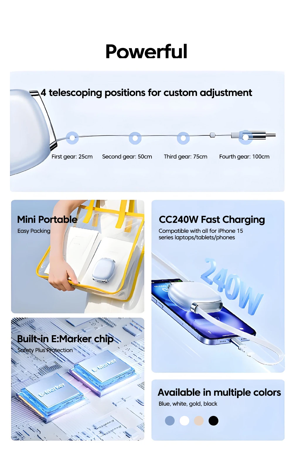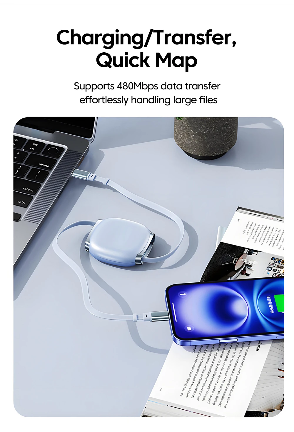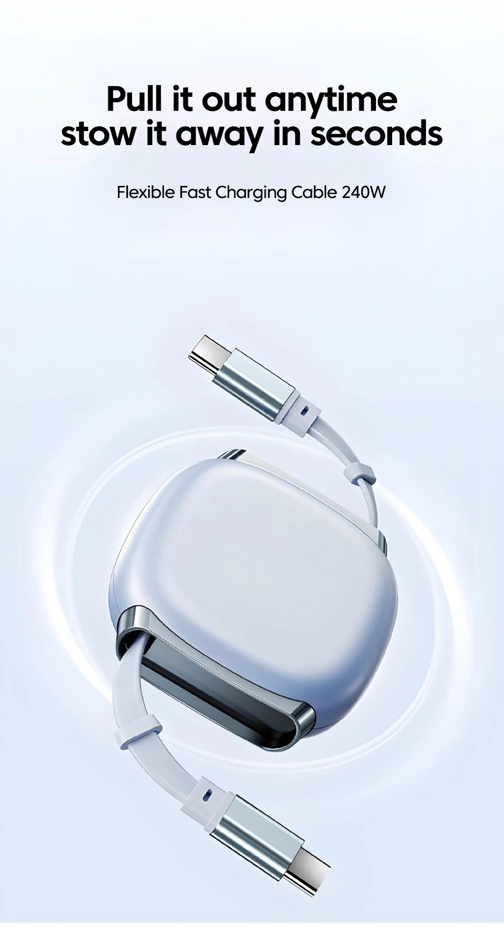 Olaf PD240W Cable retráctil USB C a tipo C Cable de carga rápida para iPhone 16 15 MacBook iPad Samsung Xiaomi Huawei Cable USB C