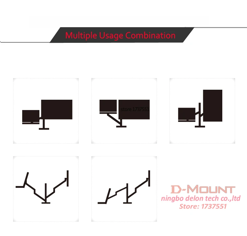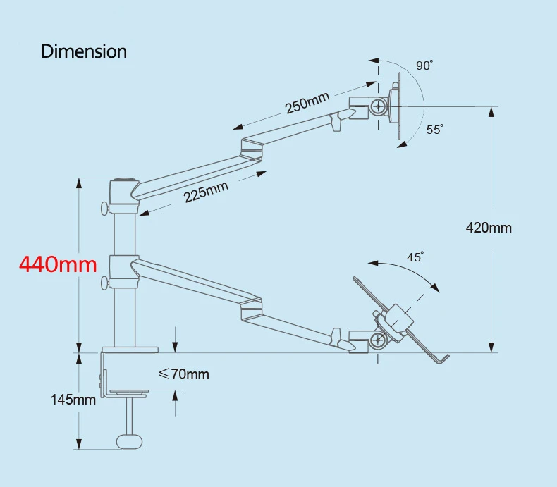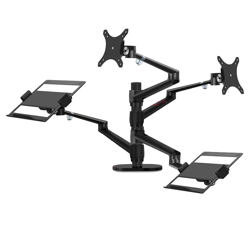 Comprar OLL-50L portátil todo en uno de aluminio de 4 brazos de 10 "-17" + soporte de escritorio para monitor de 10 "-32" y soporte con abrazadera para tableta y teclado de movimiento completo
