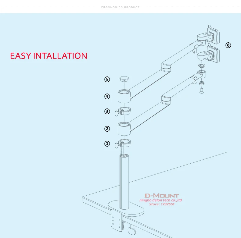 Instalación: sujeción de escritorio/montaje con ojal 2 colores para elegir: negro/plata