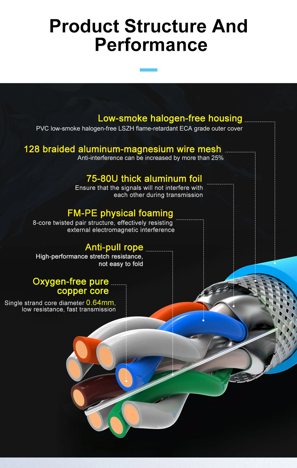 Comprar OMAY CAT7 admite Cable de red FTTH S/FTP 23AWG 4PR, doble blindaje, sin oxígeno, LSZH Coppe, 10Gbps, 600MHz, Cable de parche Ethernet