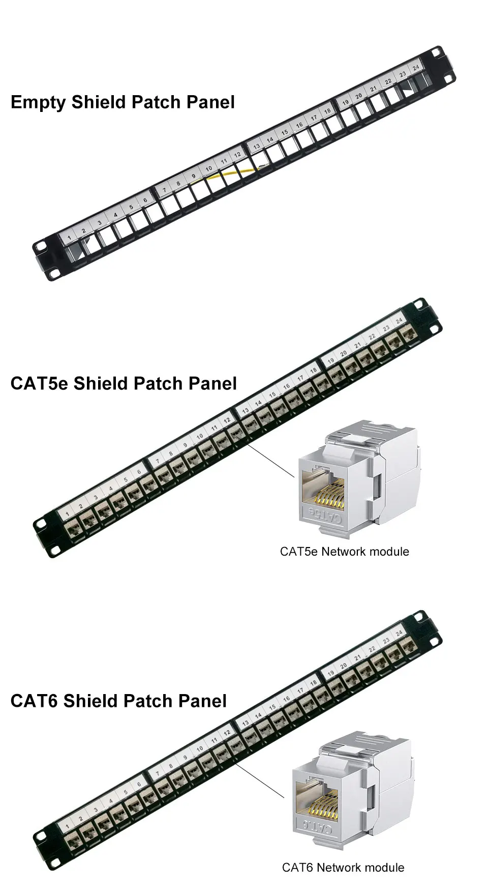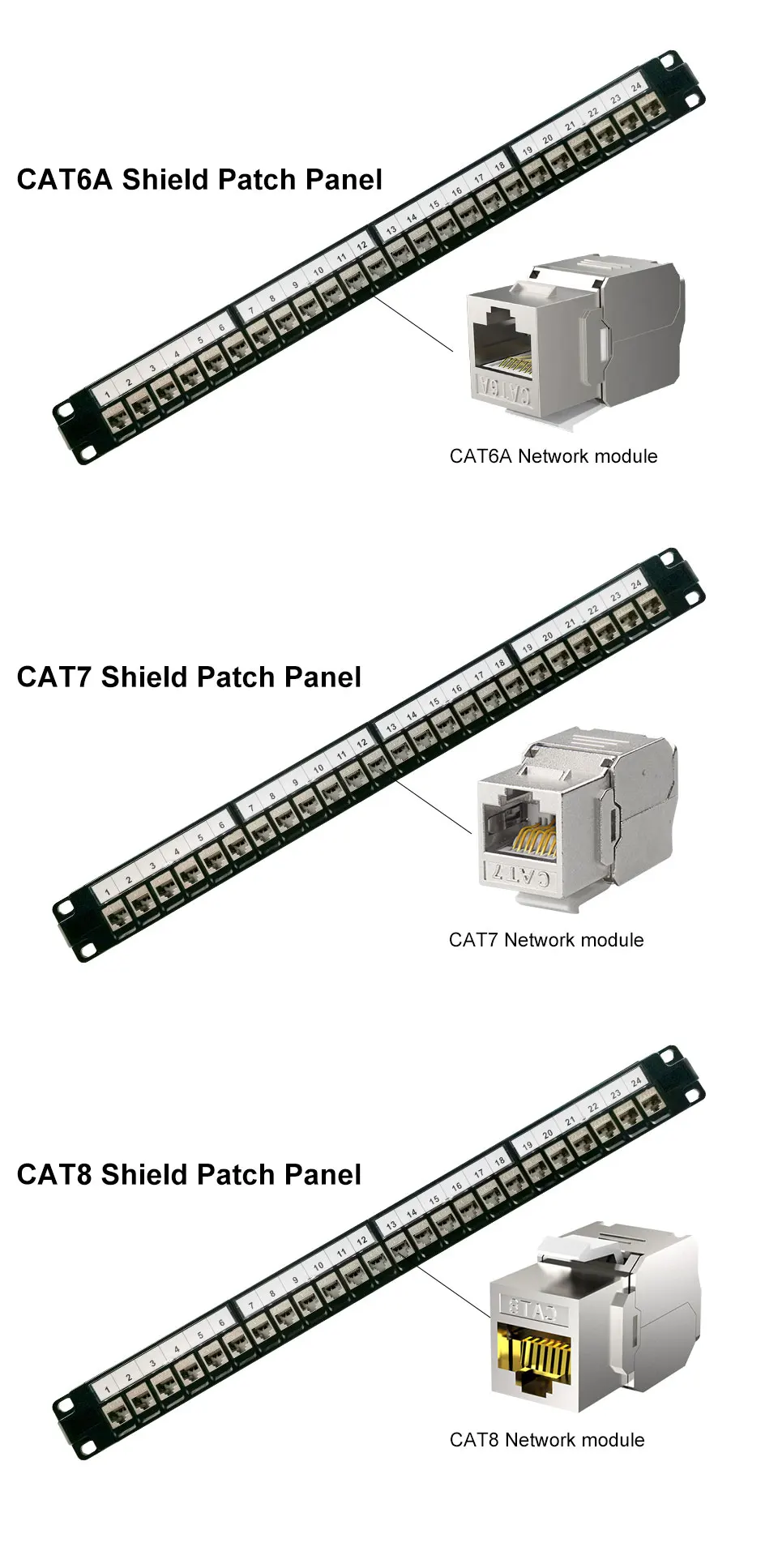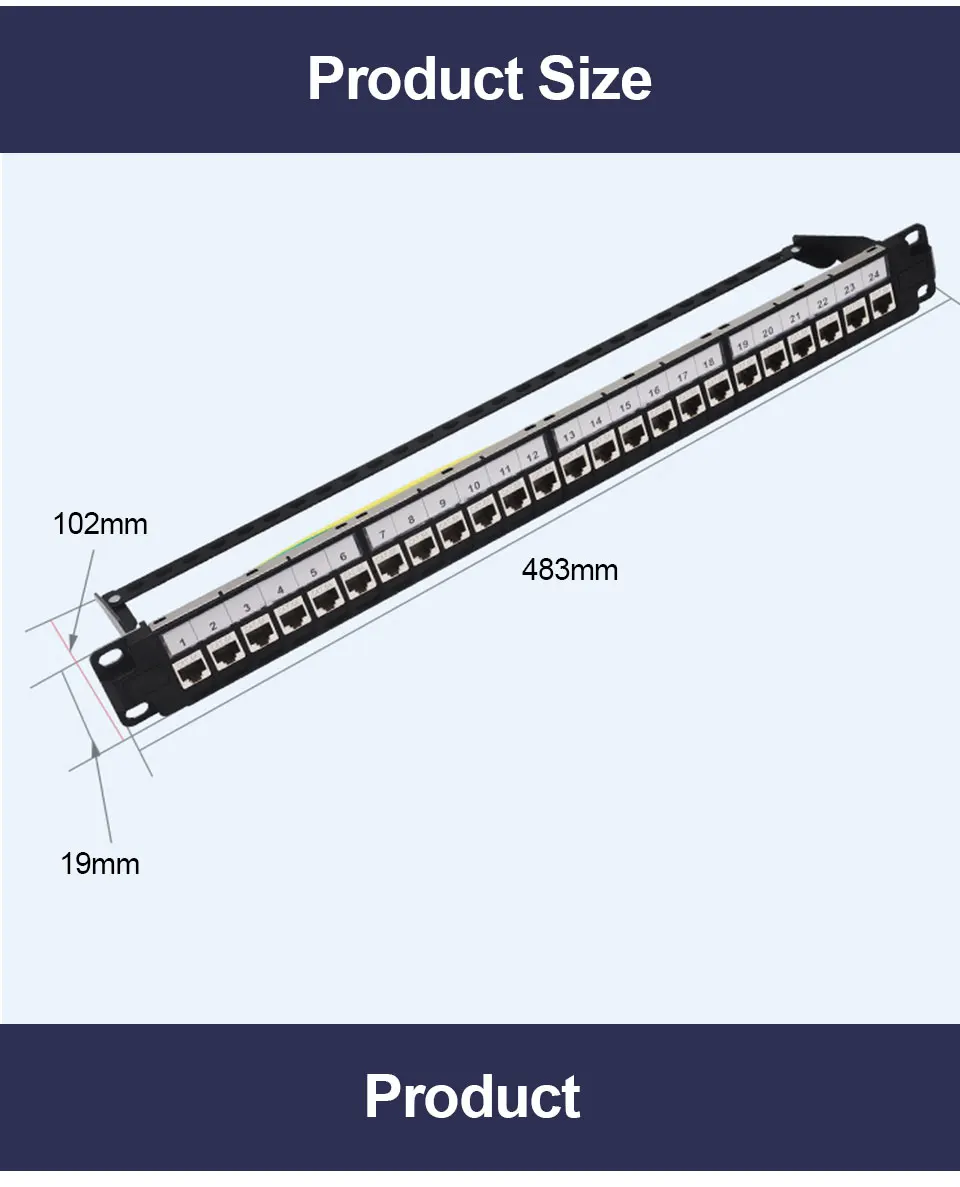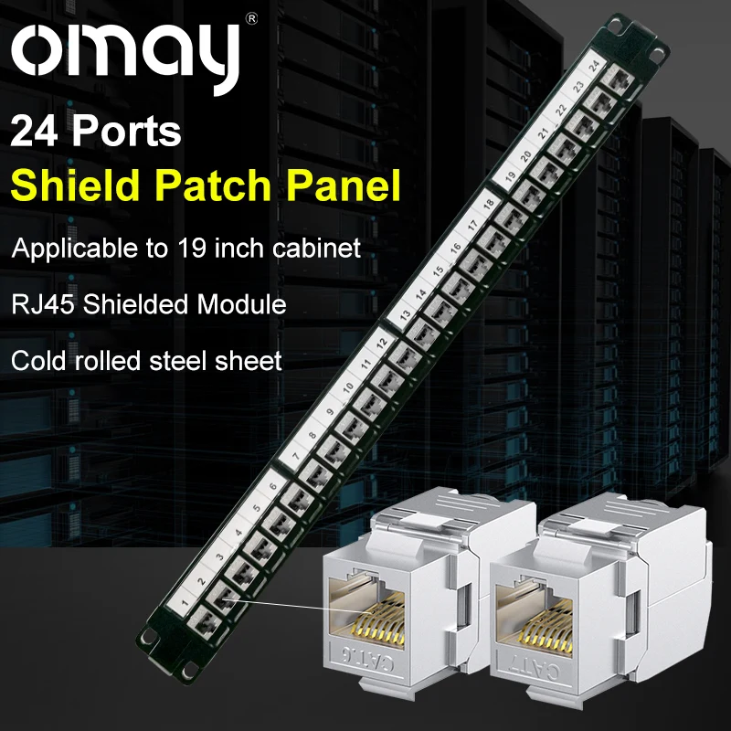 Comprar OMAY-Panel de parche de módulo blindado, montaje en pared, conector Keystone, CAT5E,CAT6,CAT6A,CAT7,CAT8, STP, 1U, RJ45, 19 ", 24 puertos